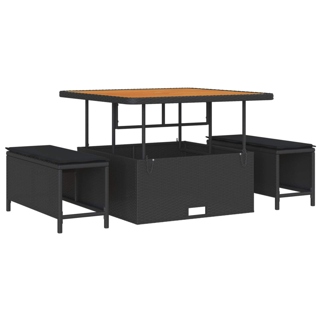Kerti Kanapé Szett párnával 11 pcs Fekete polirattan
