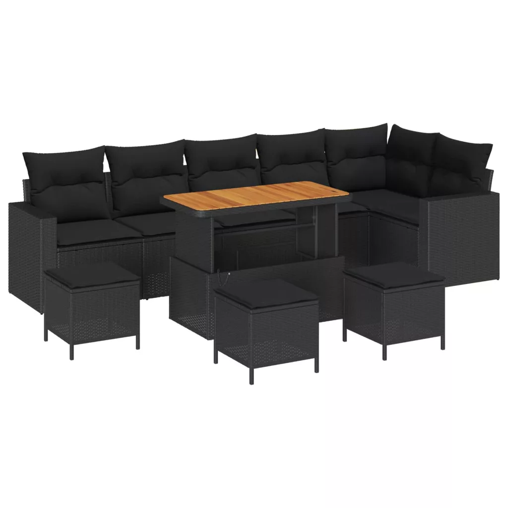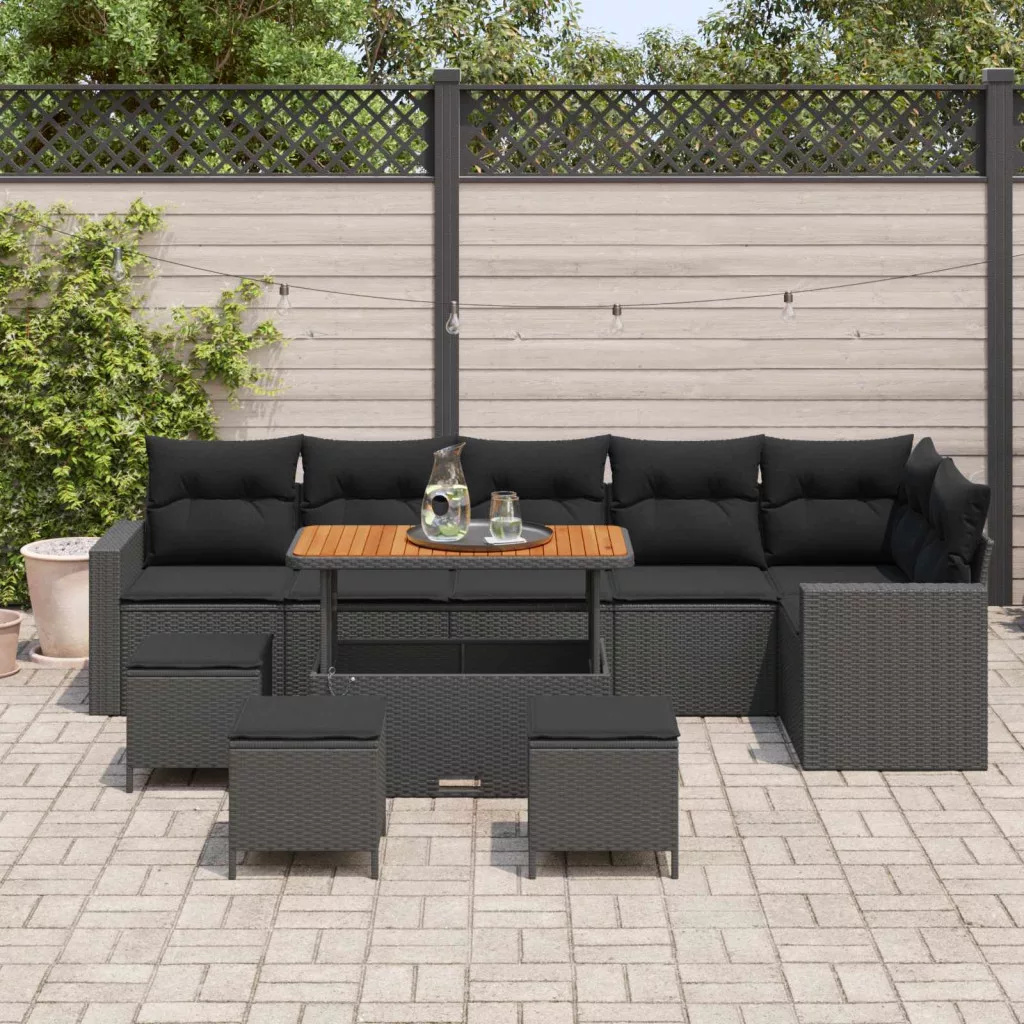 Kerti Kanapé Szett párnával 12 pcs Fekete polirattan