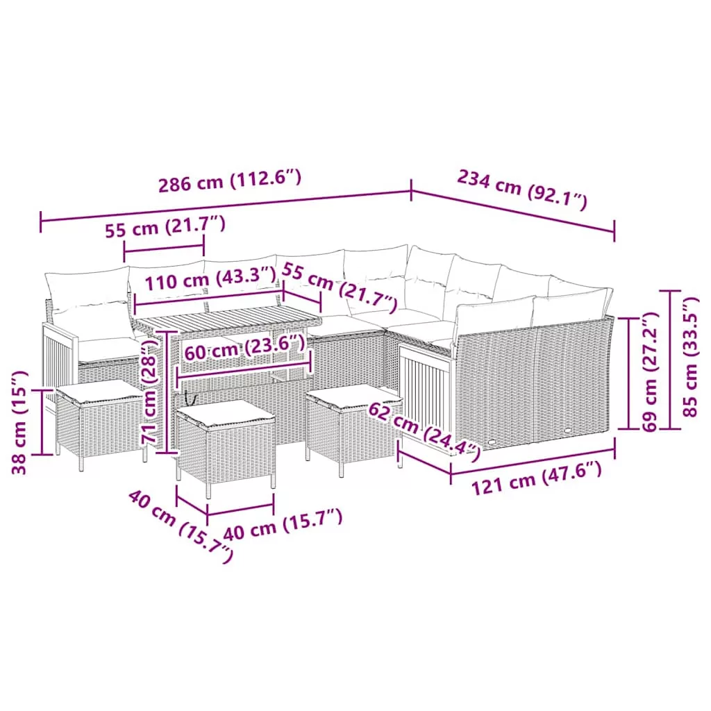 Kerti Kanapé Szett párnával 13 pcs Beige és krém