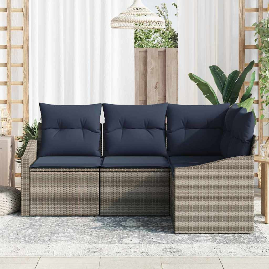 Kerti Kanapé Szett párnával 4 pcs Szürke és sötétkék polirattan