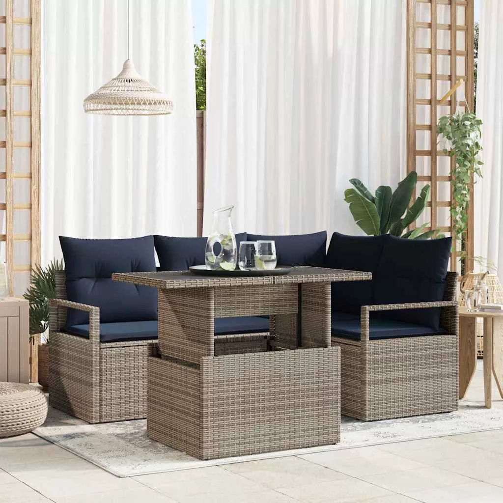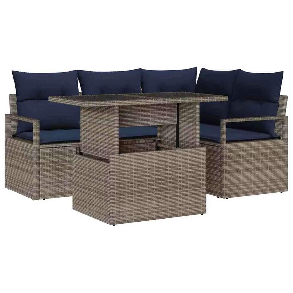 Kerti Kanapé Szett párnával 5 pcs Szürke és sötétkék polirattan