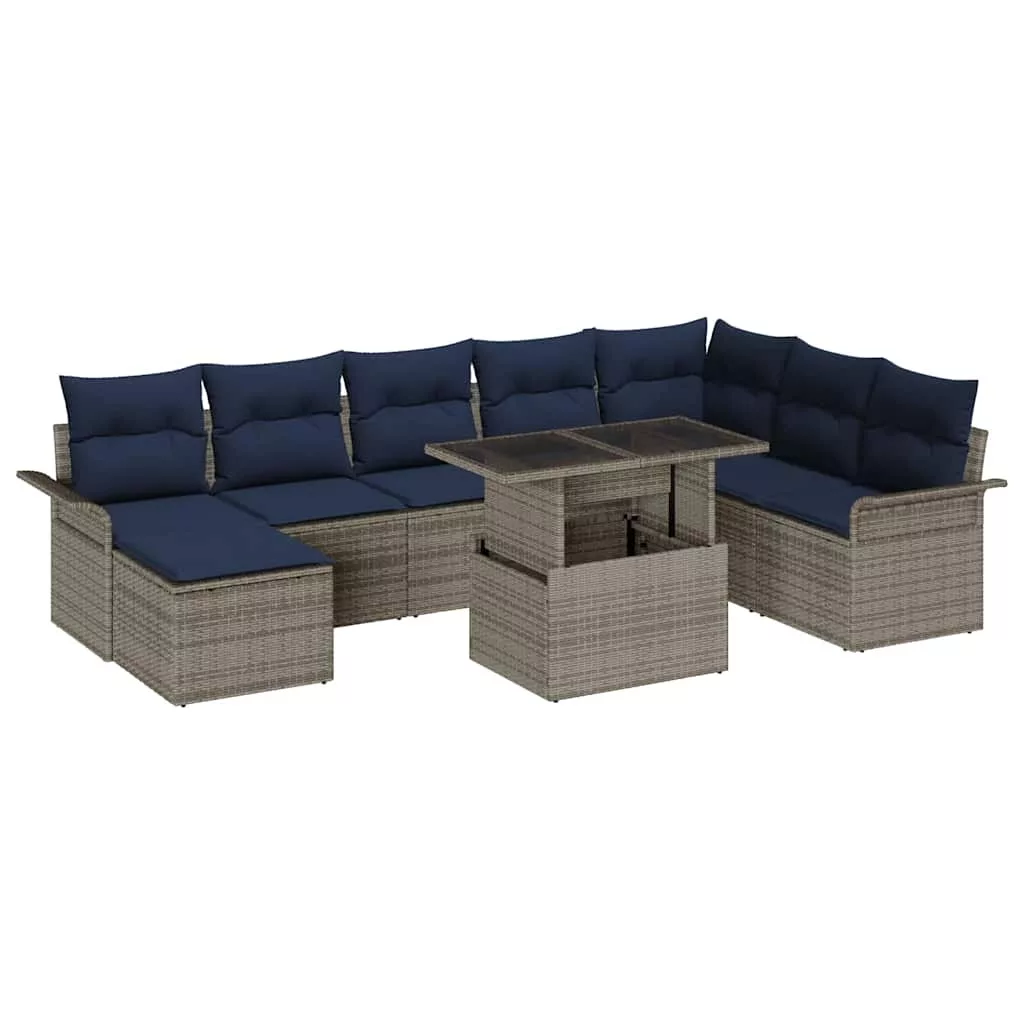 Kerti Kanapé Szett párnával 9 pcs Szürke Poly Rattan