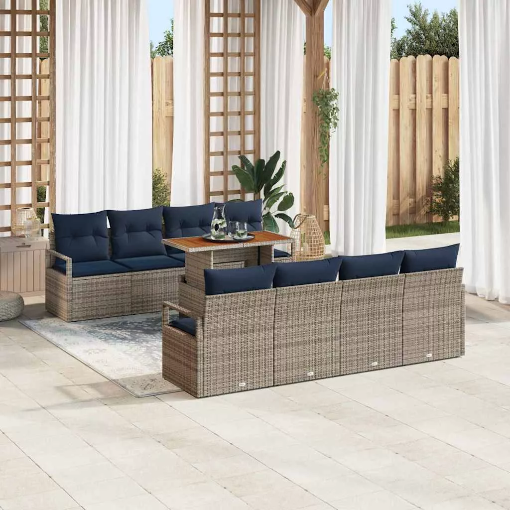 Kerti Kanapé Szett párnával 9 pcs Szürke és Tengerész Kék