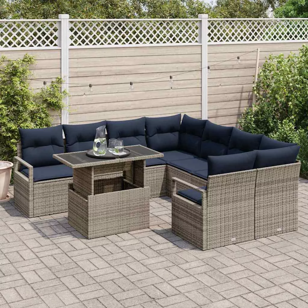 Kerti Kanapé Szett párnával 9 pcs Szürke és sötétkék polirattan