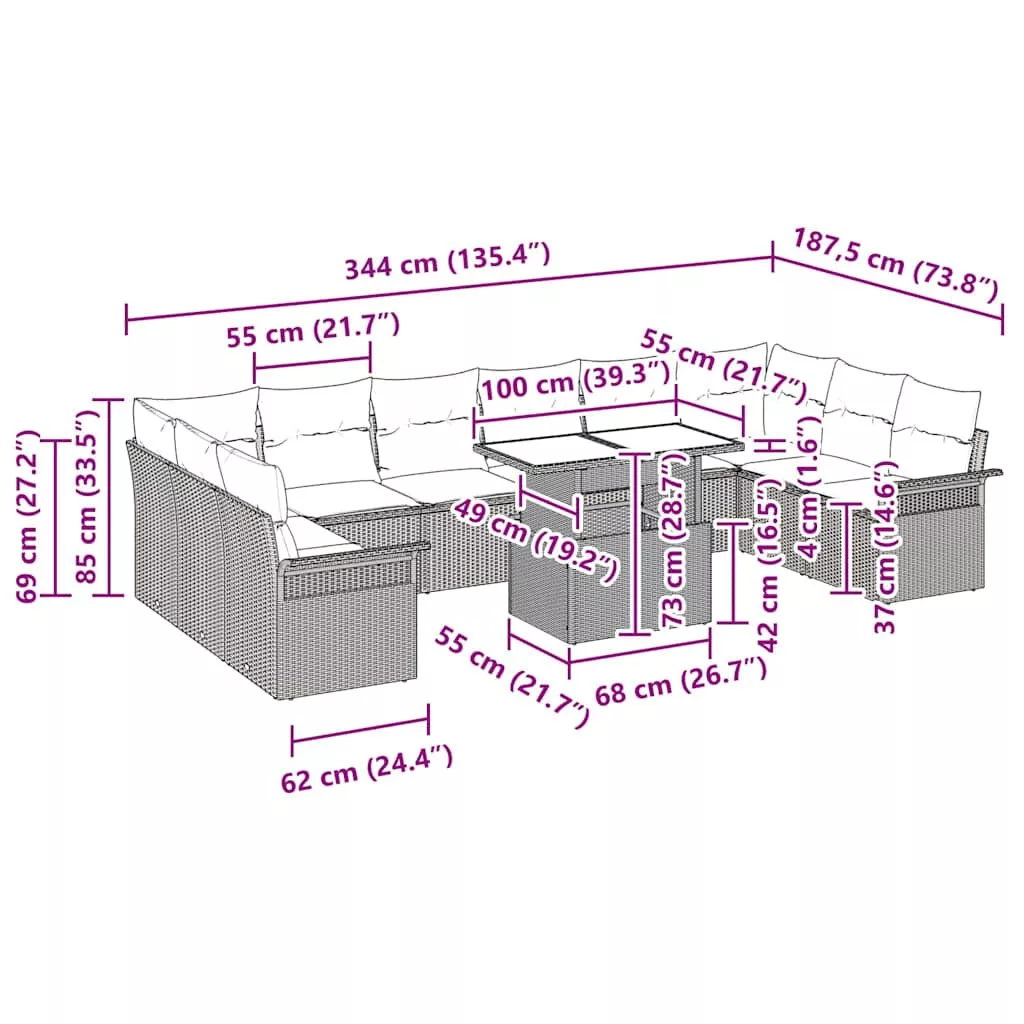 Kerti Kanapé Szett párnával párnával 11 pcs Bézs Poly Rattan