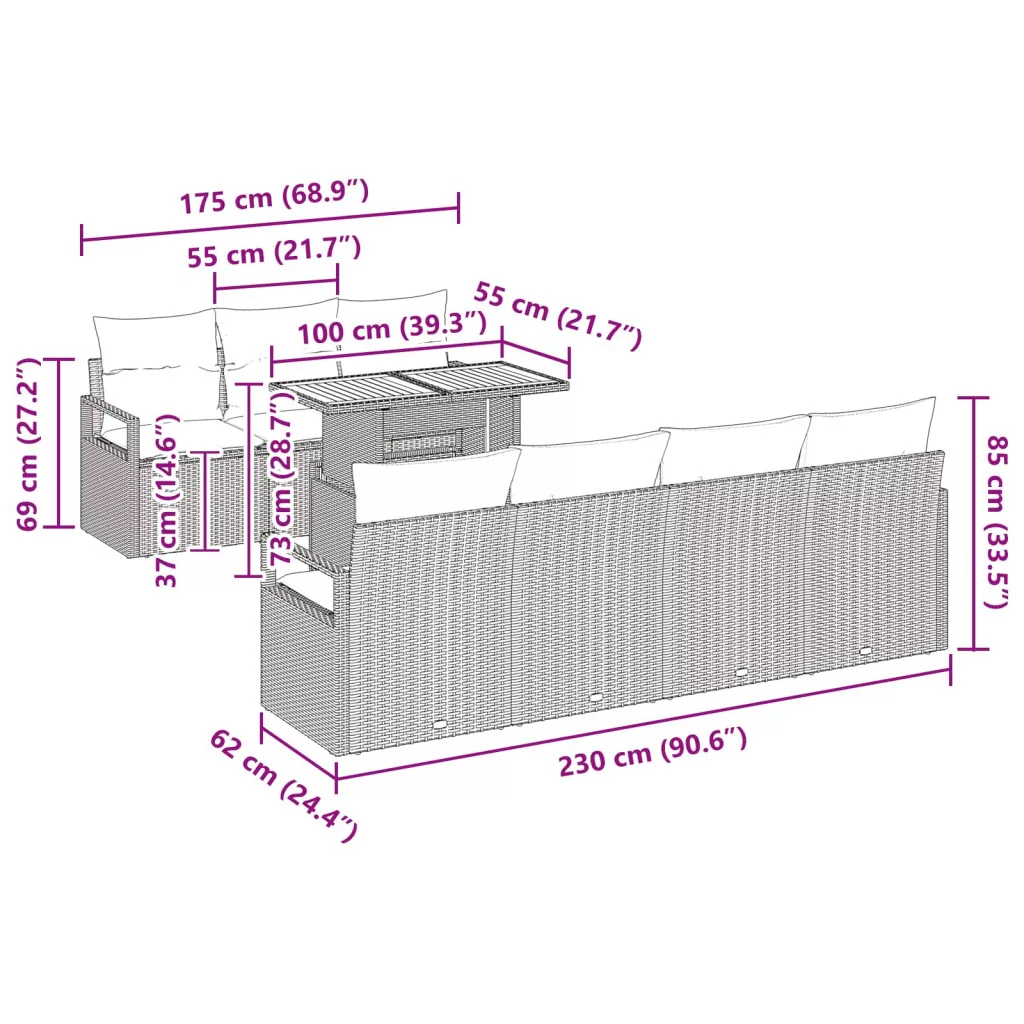 A modern Poly Rattan Kert Szófa Szett praktikus dizájnt és szuper megjelenést hoz össze, így ideális hely a kinti lazuláshoz. Moduláris darabokkal és állítható lábakkal rendelkezik, így mindig a hangulatodhoz igazíthatod, akár vendégeket szórakoztatsz, akár csak élvezed a nyugalmat. Letisztult stílusa jól passzol a kerted, teraszod vagy erkélyed színeihez. Anyagok: Ez a szett minőségi polirattanból, porszórt acélból és tömör akácfából készült. Ezeket az anyagokat a strapabíróságuk és időjárásállóságuk miatt választották, így sokáig élvezheted a kültéri szórakozást. A polirattan stílusos megjelenést ad, UV-védelmet nyújt, az acélváz pedig stabilitást biztosít. Ne feledkezz meg az akácfáról sem, ami eleganciát kölcsönöz. Beépített elemek: 4 karfás kanapé tárolóval, 3 középső ülés tárolóval és 1 kerti asztallal találkozol, amik bőséges ülő- és tárolóhelyként funkcionálnak a kültéri terekben. Minden darab a kényelmet és funkciót szolgálja, és könnyen illeszkedik a modern életstílushoz. Jellemzők / Funkció / Dizájn: A magasságállítható lábak és moduláris kialakítás lehetővé teszi a bármikor történő beállítást. Ez a rugalmasság tökéletes bármiféle kültéri tevékenységhez, az élénk találkozóktól a nyugodt pihenésig. Letisztult megjelenése simán illik a kortárs esztétikához, emelve kültéri területeid szépségét. Ajánlott használati módok: Tökéletes kertekhez és teraszokhoz, ez a szett remekül alkalmas baráti összejövetelekre, pihenéshez vagy étkezéshez. A polirattan anyag még az intenzív használat mellett is bírja, ideális a nyári napokra. Karbantartás és gondozás: Tippeket tartalmaz arra, hogy miként használd a fedőt a bútor védelmére, amikor nem használod, így segítve abban, hogy sokáig megőrizze szépségét és funkcióját. Ez a kis lépés megkönnyíti az éves karbantartást.