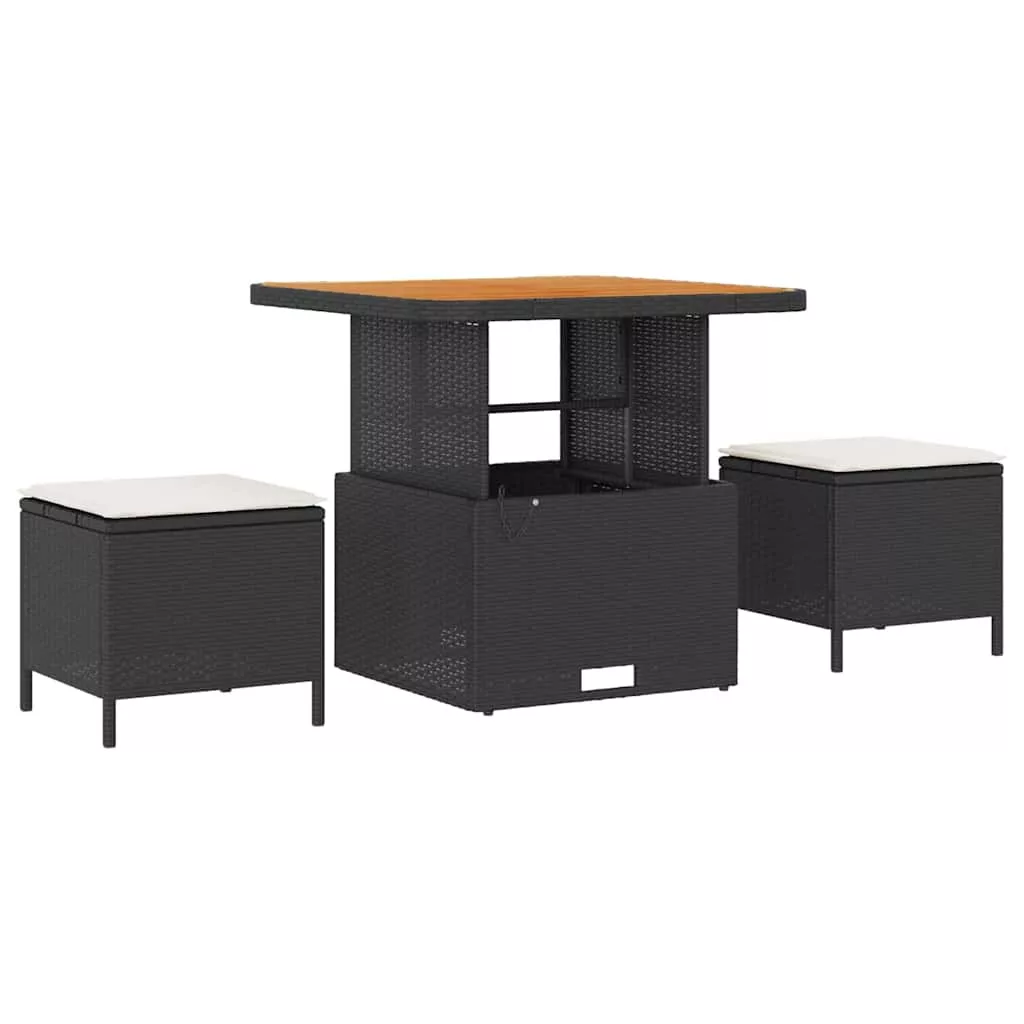 Kerti Kanapé Szett párnával tárolóval 8 pcs Fekete Poli rattan
