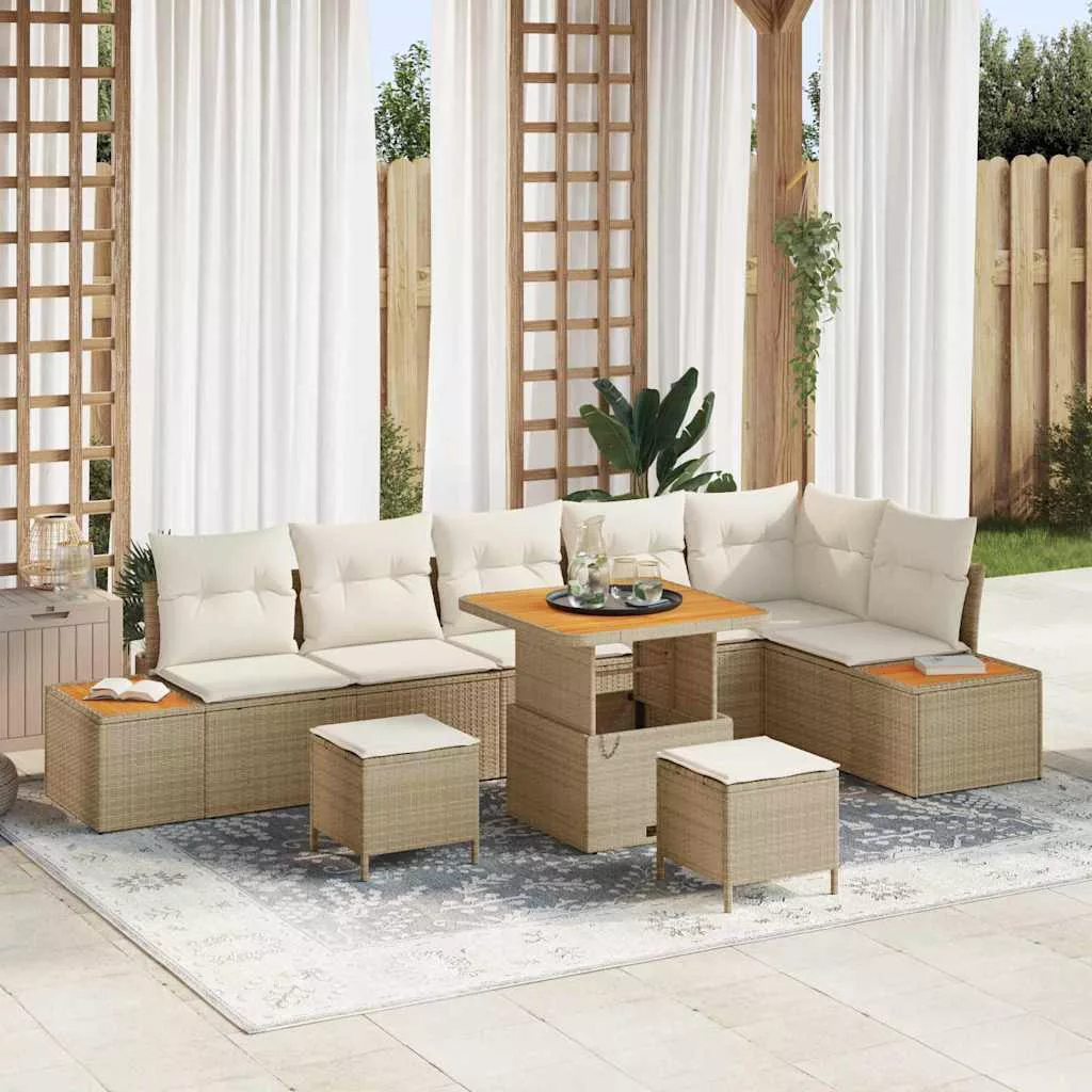 Kerti Kanapé Szett párnával tárolóval 9 pcs Bézs Poli rattan