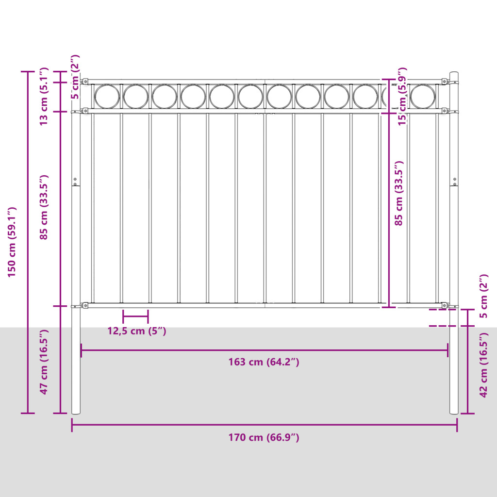 Kerti Kerítés Szürke 1,7x1 m Acél