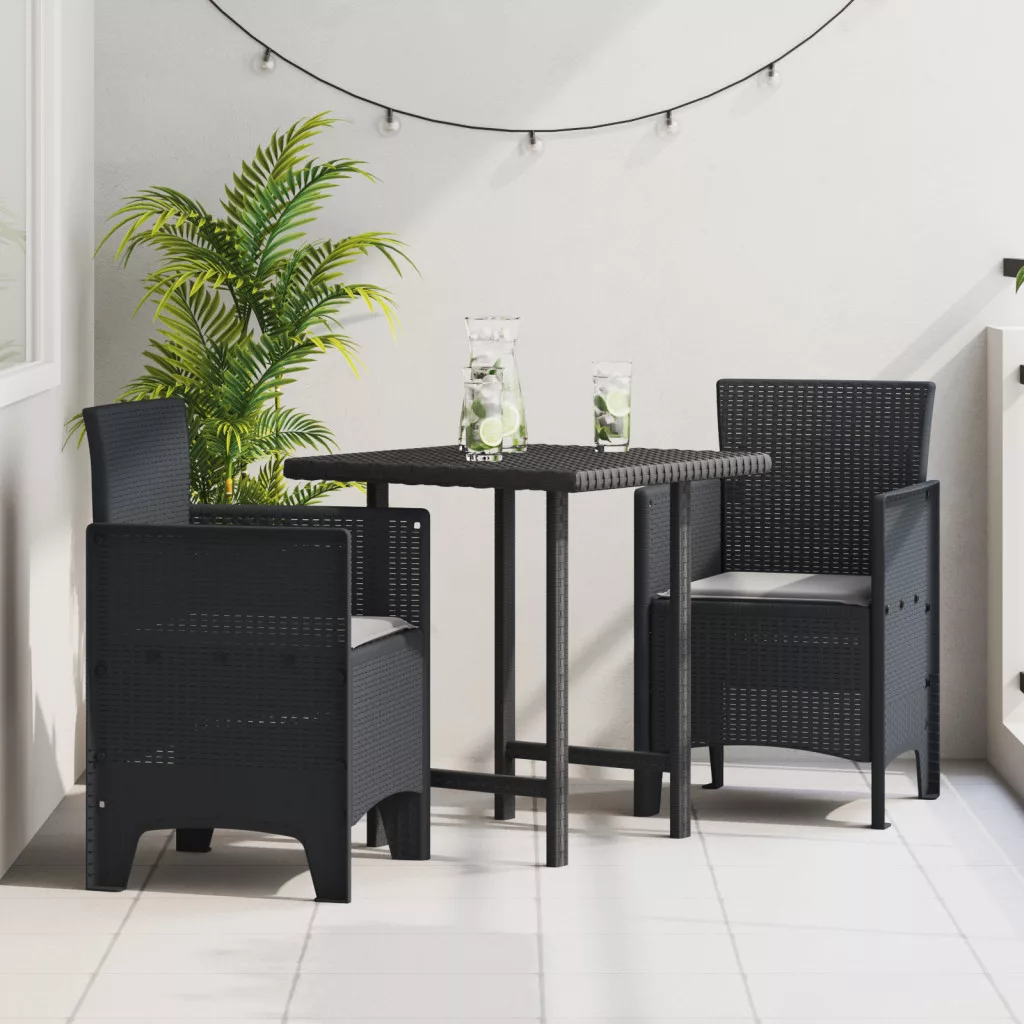 Ez a kerti székekből álló szett a kényelem és a praktikusság kedvéért készült, remek a kültéri szórakozáshoz családdal és barátokkal. Tartós szintetikus műanyagból készült, stílusos antracit színű székek világosszürke párnákkal, amik kényelmet nyújtanak. Kültéri Tartósság: Ezek a székek bírják a kültéri használatot, jól néznek ki és jól működnek egész évben. Kényelmes Párnák: Az időjárásálló párnák komfortosan ülsz rajtuk, ideálisak a hosszú nyári napokra, amiket kint töltesz. Könnyű Tisztítás: Egy gyors törlés, és máris frissek maradnak, így több időt tölthetsz céltalanul. Modern Esztétika: A letisztult dizájn és a texturált felület modern hatást kölcsönöz a kertednek, stílusossá téve őket. Biztonságos Kényelem: Ezeket úgy tervezték, hogy egyenként 120 kg-ot elbírjanak, így szilárd támogatást és kényelmet nyújtanak két felnőtt számára.