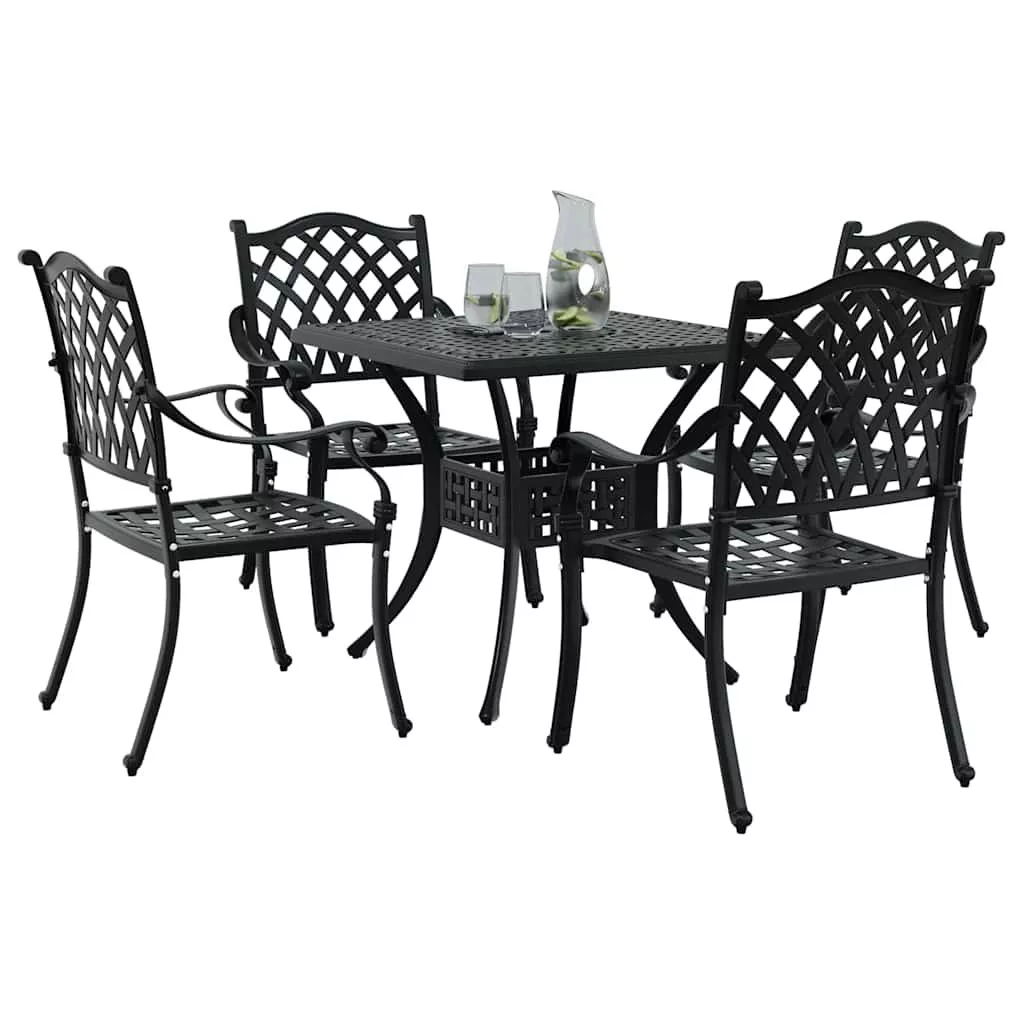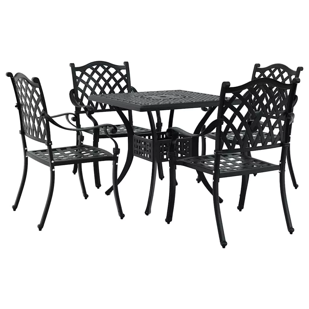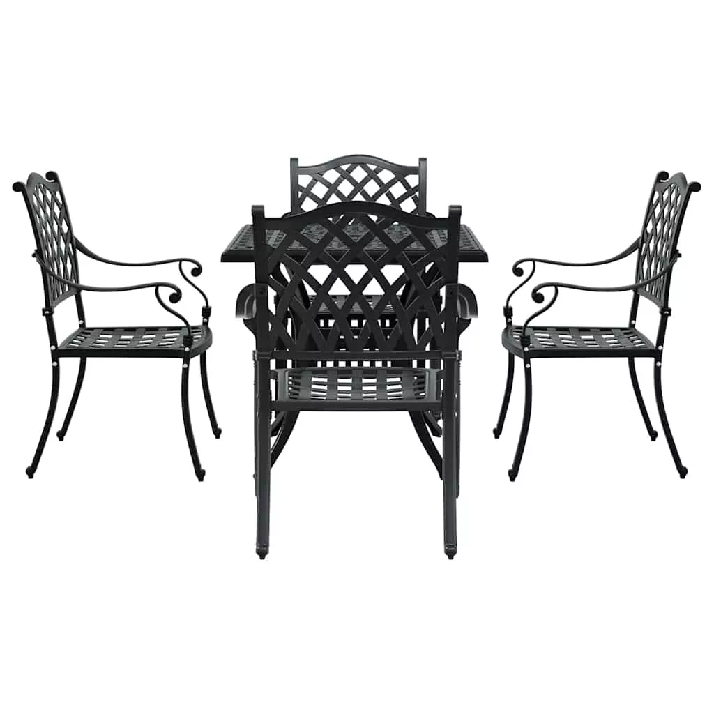 Kerti asztalszett 5 pcs Fekete Öntött alumínium