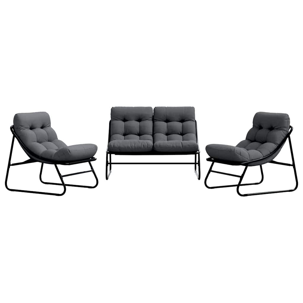 Kerti bútor párnával 3 pcs Fekete Porszórt acél