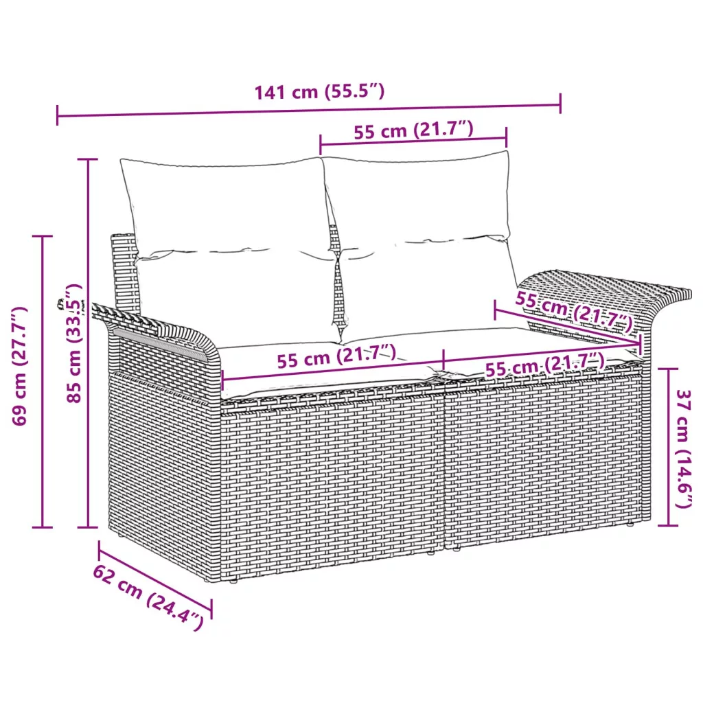 Kerti kanapé párnával 141 x 62 x 69 cm polirattan