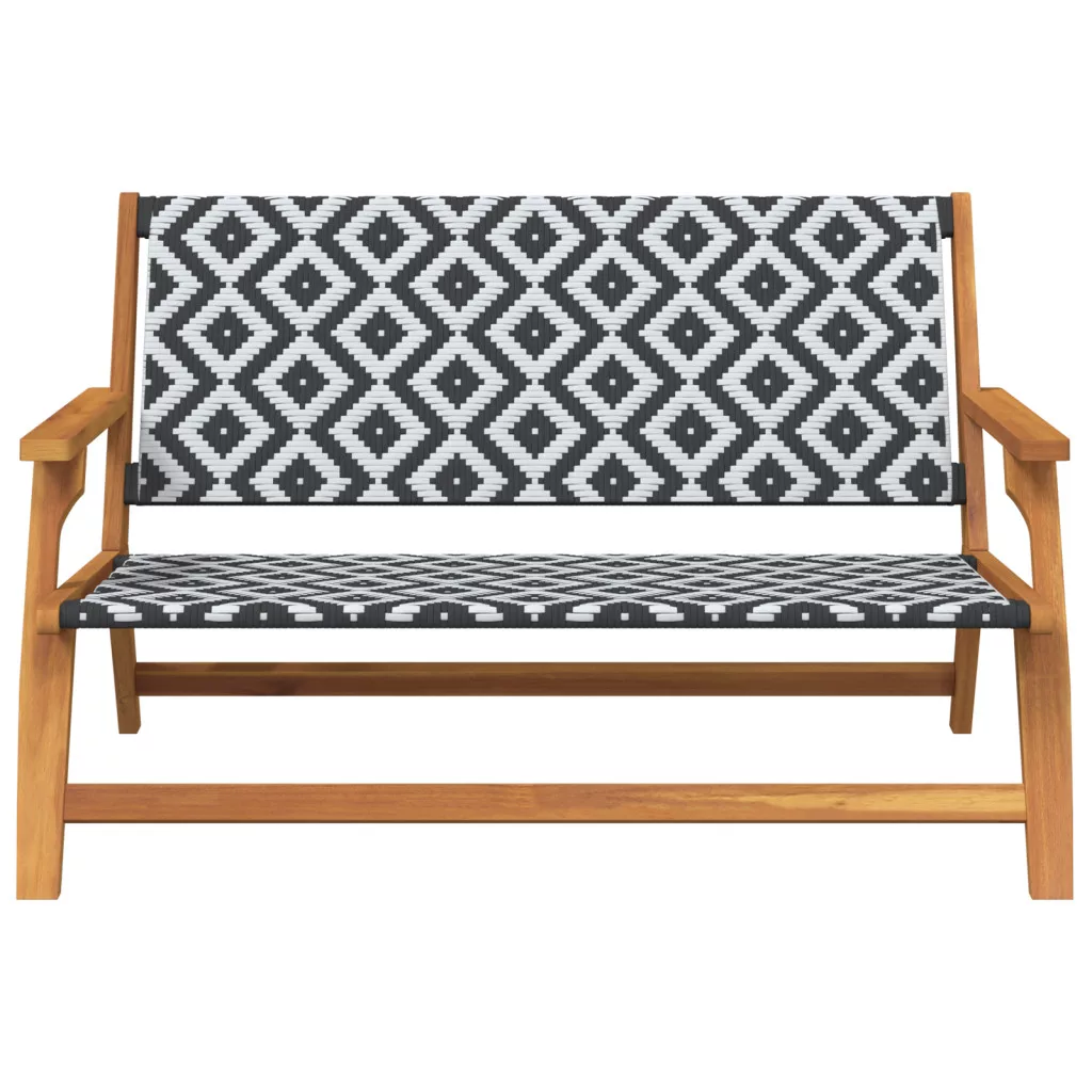 Ez a kerti pad a kényelmet és a stílust vegyíti, tökéletes pihenéshez bárhol. A feltűnő fekete-fehér mintás rattan és a tömör akácfa elegáns érintést ad, amely feldobja a teraszokat, erkélyeket vagy kerteket, miközben kényelmesen elfér rajta két ember. Prémium anyag: Tömör akácfából készült, ez a pad rendkívül tartós, és hosszú távú használatra tervezett, miközben megőrzi a szép megjelenését az idő múlásával. Elegáns megjelenés: Kortárs geometrikus dizájnjával ez a kerti pad feldobja a kültéri tered hangulatát, stílusos fókuszpontként működik. Bőséges méret: A 122 x 78 x 73 cm-es méretével bőséges hely áll rendelkezésre két főnek, így kényelmes ülőhelyet biztosít a család vagy barátok társaságában. Kültéri és beltéri használat: Ez a rugalmas darab jól illik bármely területhez, legyen az kert, terasz vagy erkély, tökéletes különféle pihenőhelyekhez. Könnyű karbantartás: A pad gondozása egyszerű; a rendszeres tisztításnak köszönhetően évekig jól néz ki.