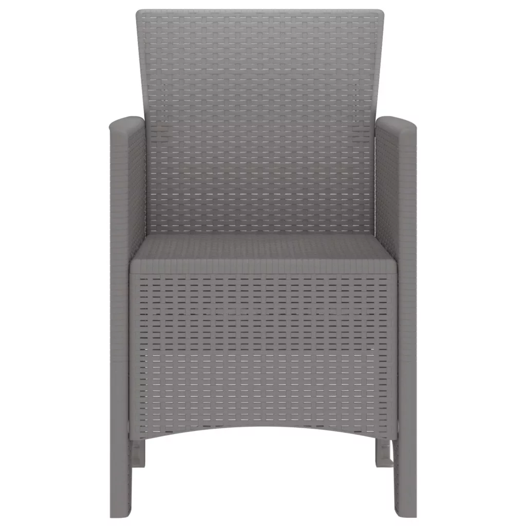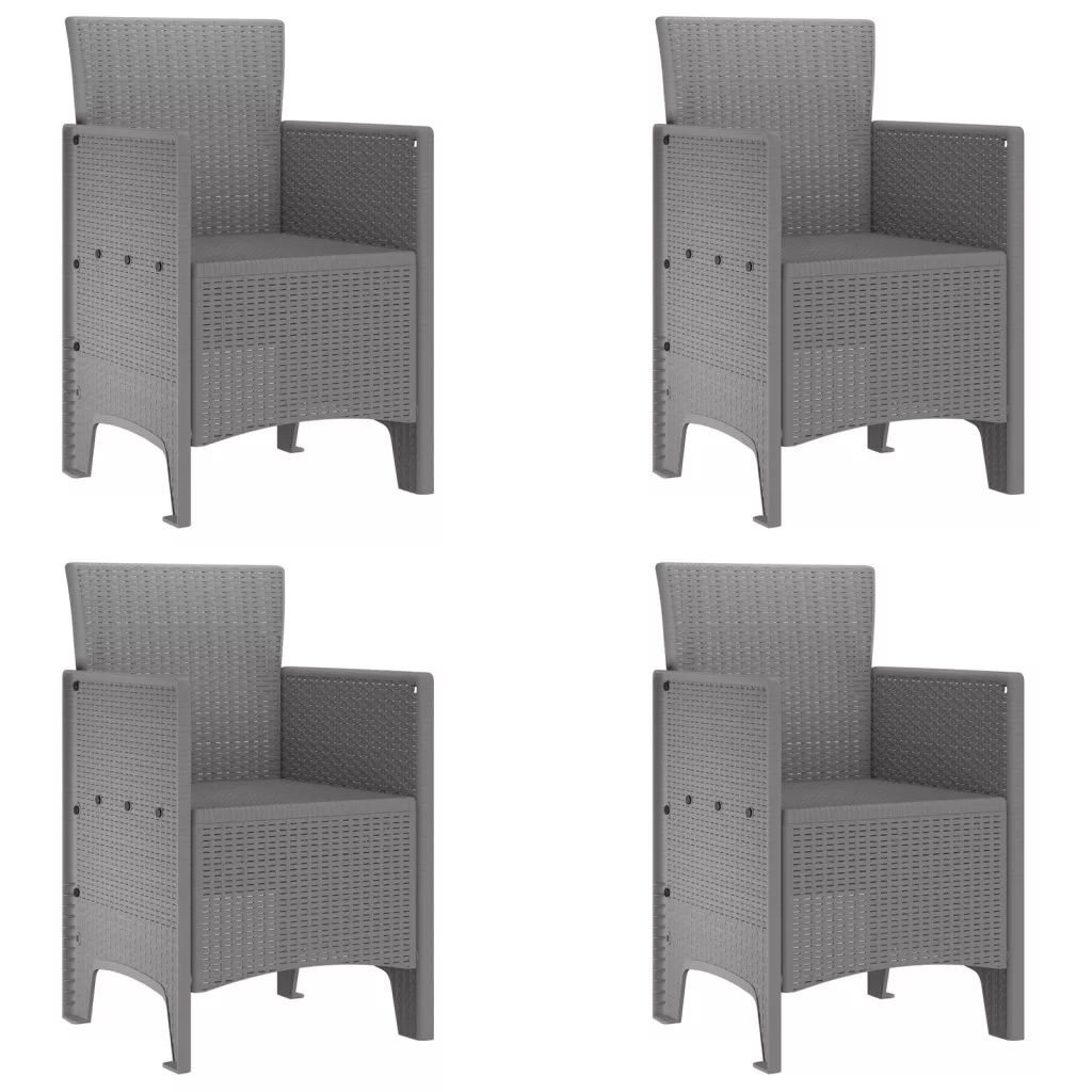 Ez a négy világosszürke kertiszék a praktikát és a stílust ötvözi, így tökéletes, ha a barátokkal vagy családdal pihennél kint. A strapabíró szintetikus műanyag miatt ezek a székek modern megjelenésükkel jól illenek bármilyen erkélyhez, teraszhoz vagy kerthez. Kültéri tartósság: Ha kültéri viszontagságoknak kell ellenállnia, ez a szék simán megállja a helyét és egész évben jó néz ki. Könnyű konstrukció: Csak pár kilót nyomnak, így simán tudod hordozni őket a kertedben vagy a teraszodon. Egyszerű tisztítás: Egy gyors törlés eltávolít mindent, így több időd marad élvezni, és kevesebb a takarítással. Modern dizájn: Stílusos vonalak és textúrázott felület kortárs színt ad a kültéri helyiségeidnek. Biztonságos kényelem: 100 kg-ig bírja, szóval ideális egyedi ülőhelyekhez, biztosítva a stabilitást és kényelmet.