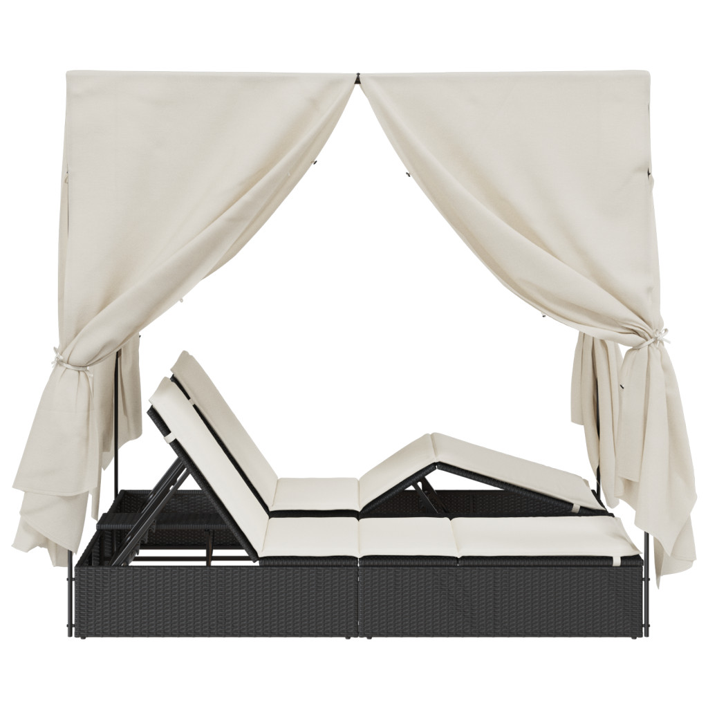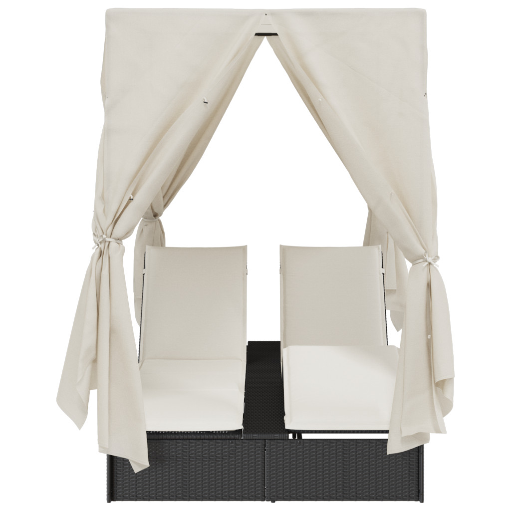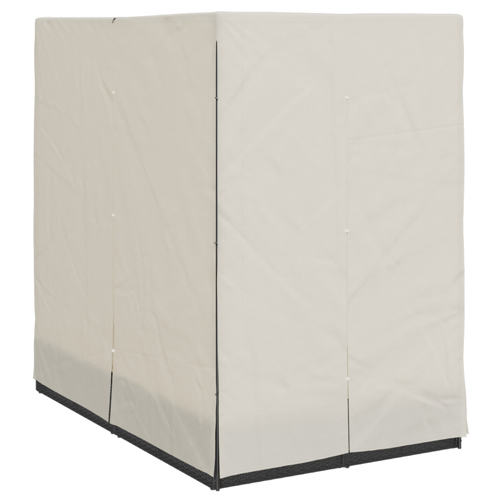 Kétrészes Napágy Tetővel és Függönyökkel Fekete Poli Rattán