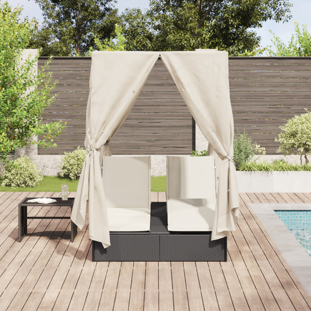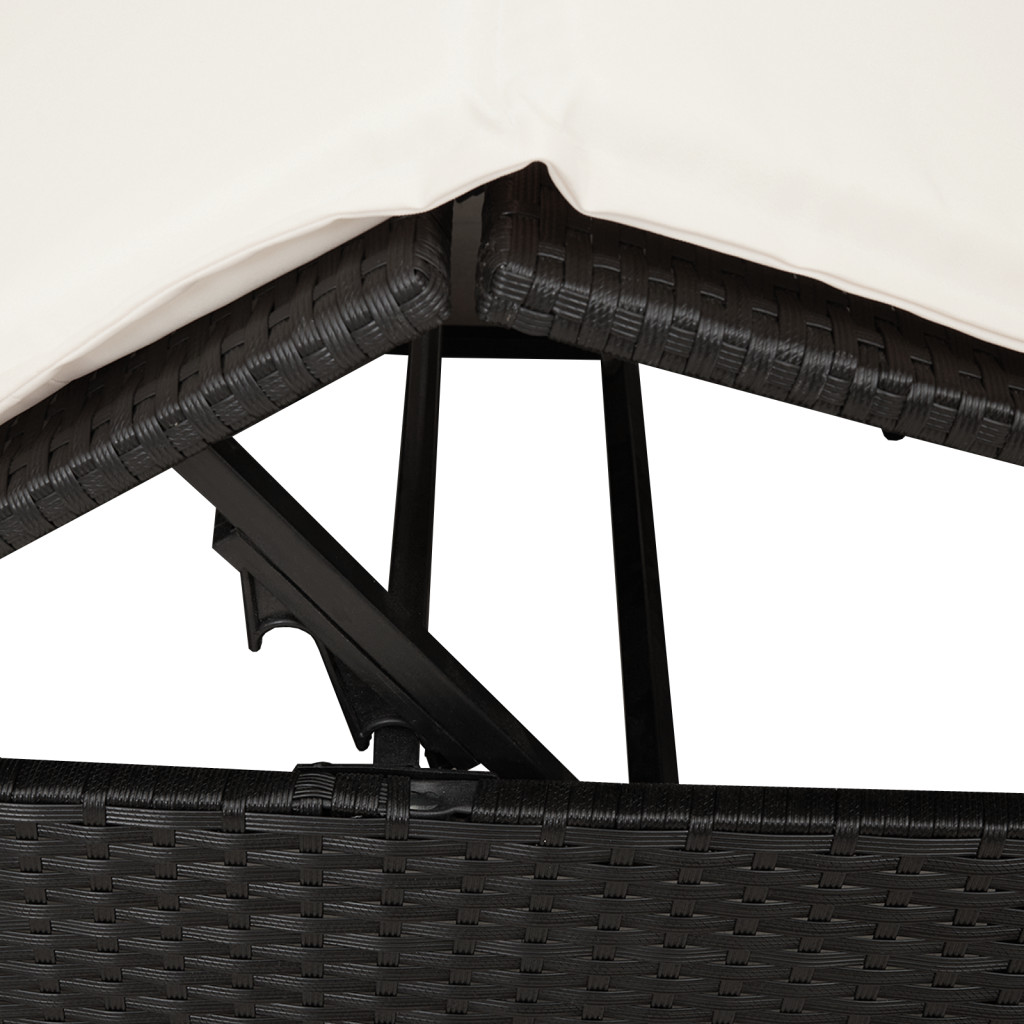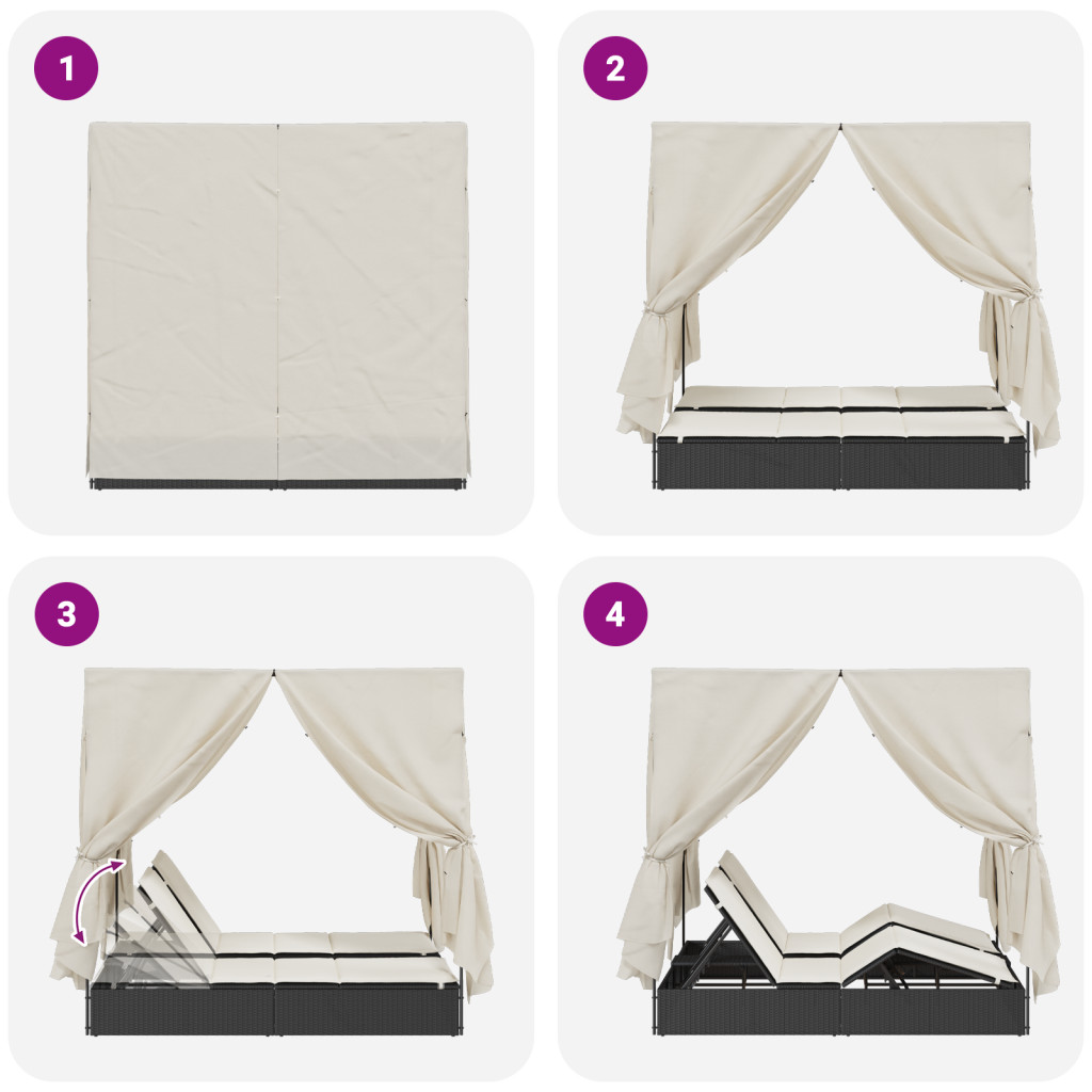 Kétrészes Napágy Tetővel és Függönyökkel Fekete Poli Rattán