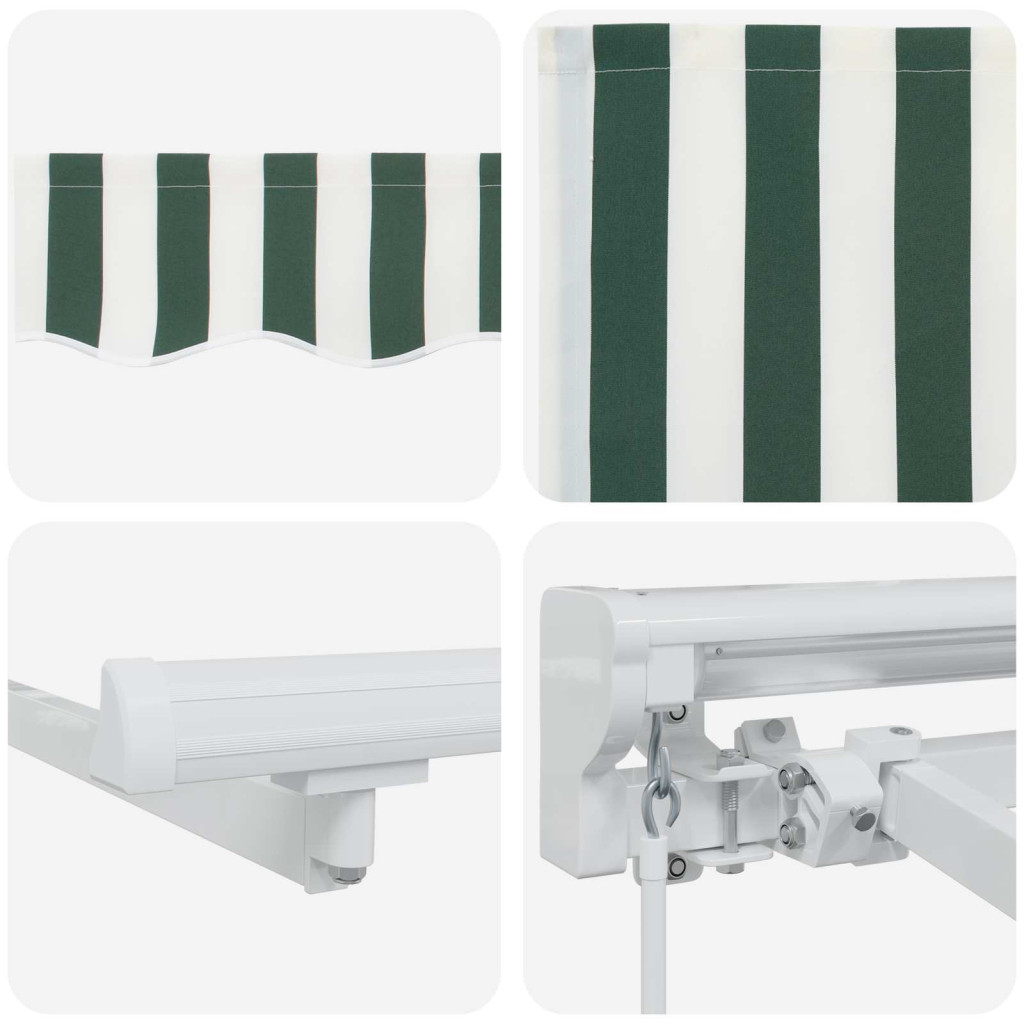Kézi Retraktálható Napernyő Zöld és Fehér 5 x 3 m
