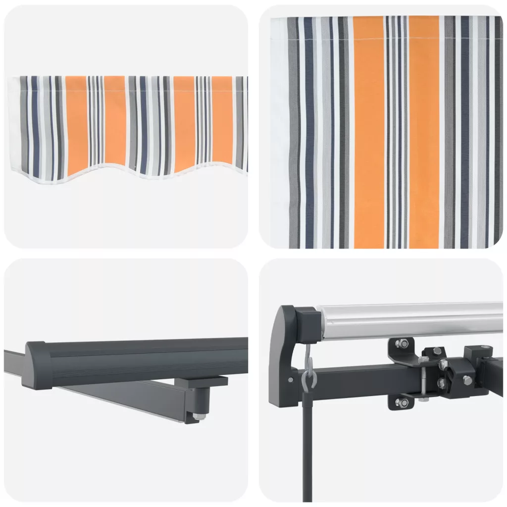 Frissítsd fel kültéri tered a vidaXL Kézi behúzható napellenzővel, ami nélkülözhetetlen árnyékot és védelmet ad a káros UV sugarak ellen. Ez a praktikus napellenző stílusos, többszínű csíkos dizájnnal bír, ami modern hangulatot ad a teraszoknak és erkélyeknek. Tartós poliészterből készült, víz- és UV-álló, így biztos lehetsz benne, hogy kibírja az időjárás viszontagságait. Veszély! Kinyitáskor a rugó erősen kipattan. NE távolítsa el a kötelet addig, amíg az összes összeszerelési lépést be nem fejezte, az összes csavart nem rögzítette és az elem nincs a falhoz rögzítve! Figyelem! Legyen óvatos a karok kilazításakor, mert azok feszültség alatt állnak! Az összecsukható kar hirtelen kiengedése sérülést okozhat. Figyelmeztetés: A termék használata előtt el kell olvasni a használati útmutatót. Figyelem: A fagyos körülmények között történő használat kárt tehet a termékben. Külső felhasználás épületeknél és egyéb építkezéseknél.