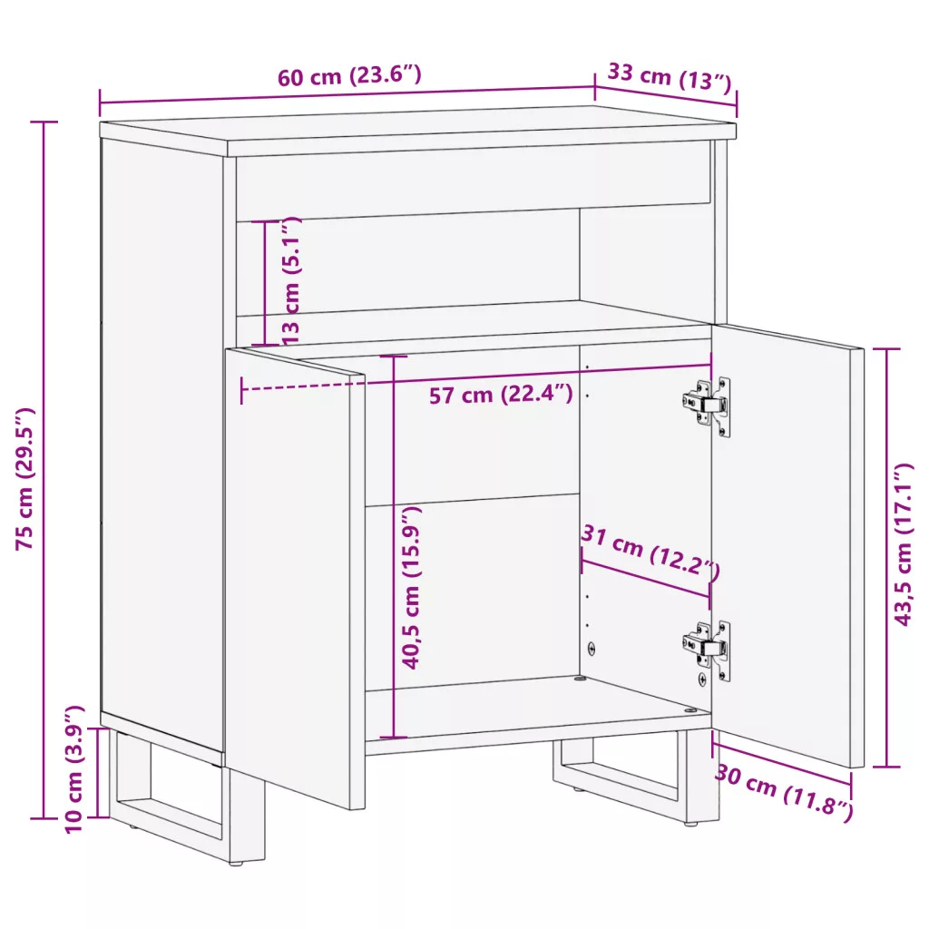 Kiszekrény 60x33.5x75 cm - Tömör Fa Mangó