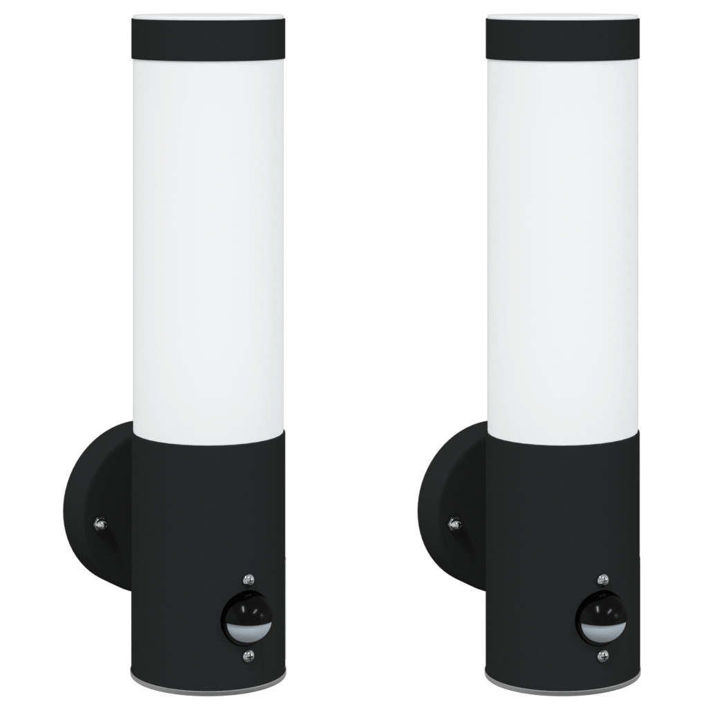Kültéri Fali Lámpák Érzékelővel 2 db Fekete Rozsdamentes Acél IP44