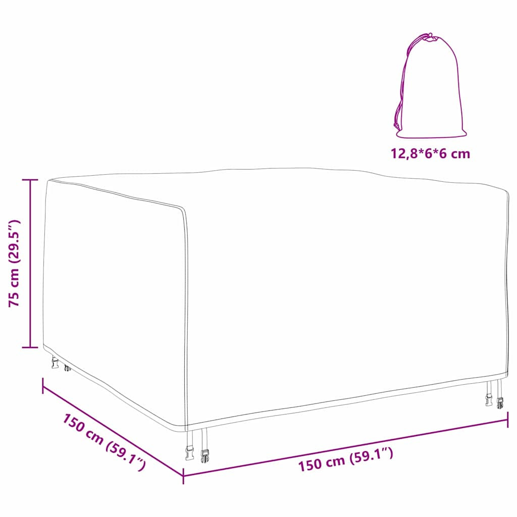 Kültéri bútorhuzat Fekete 150 x 150 x 75 cm 420D