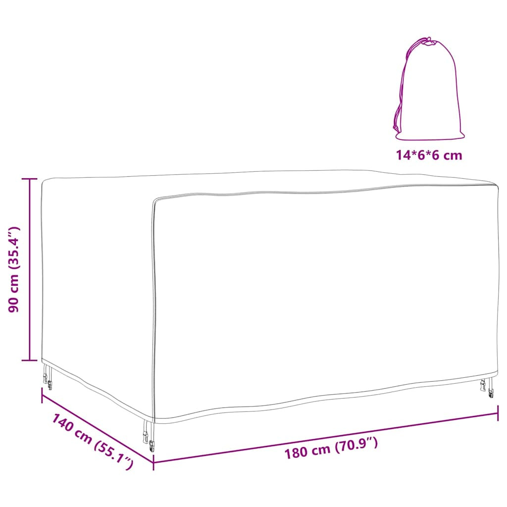 Kültéri bútorhuzat Fekete 180 x 140 x 90 cm 210D