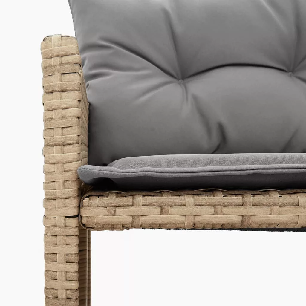 L-alakú bézs polyrattan kerti kanapé asztallal és párnával