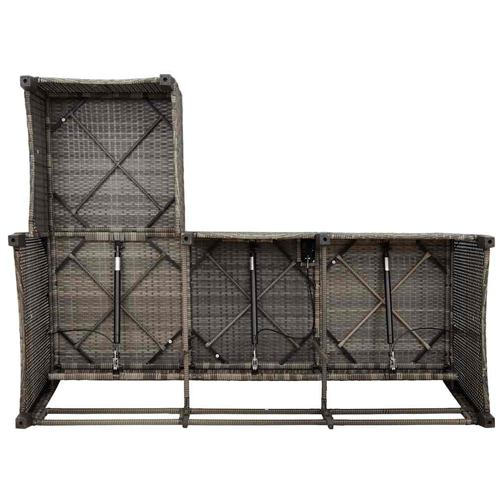 L-alakú szürke polyrattan fekvő kerti kanapé párnákkal