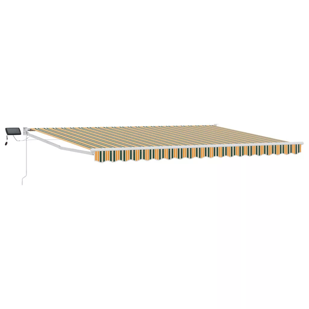 LED-es, kézi kihúzható napernyő Zöld és Sárga 4,5 × 3 m