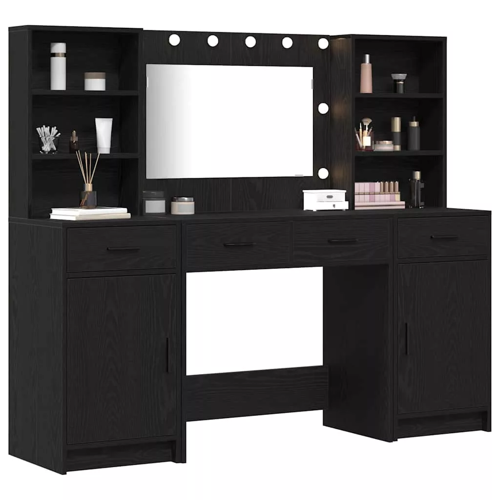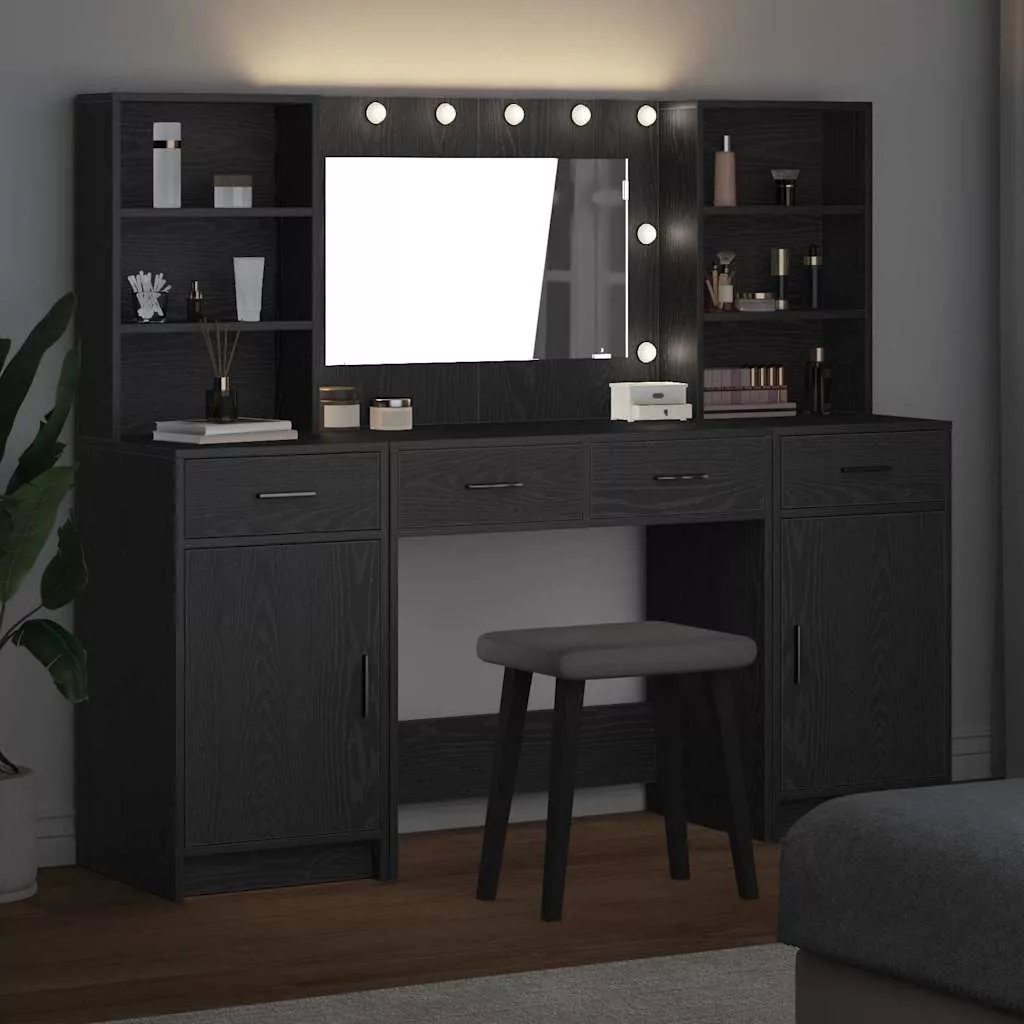 LED-es öltözködő asztal szett 3 pcs Fekete tölgy Faanyag