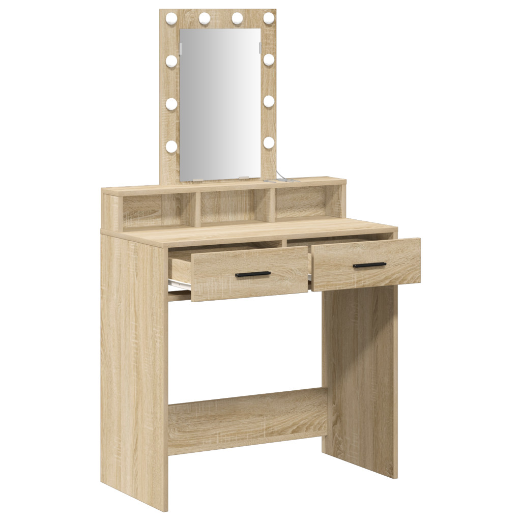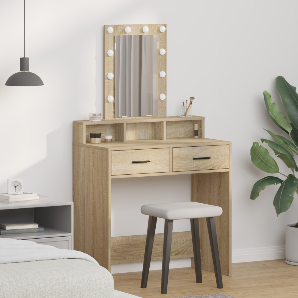 LED-es sminkasztal Sonoma tölgyből 79x41x140 cm