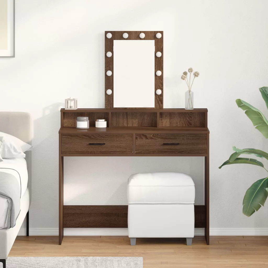 LED-es sminktükör Barna tölgy 100x41x140 cm