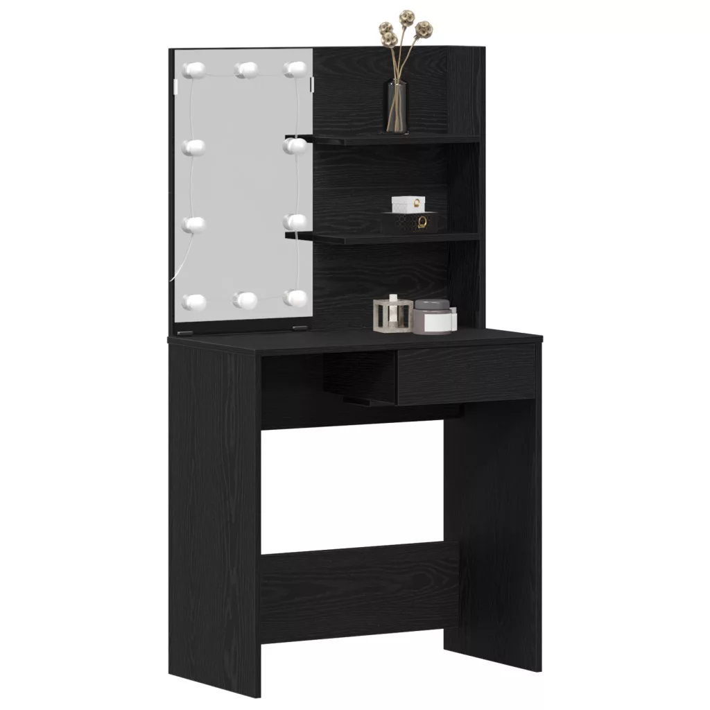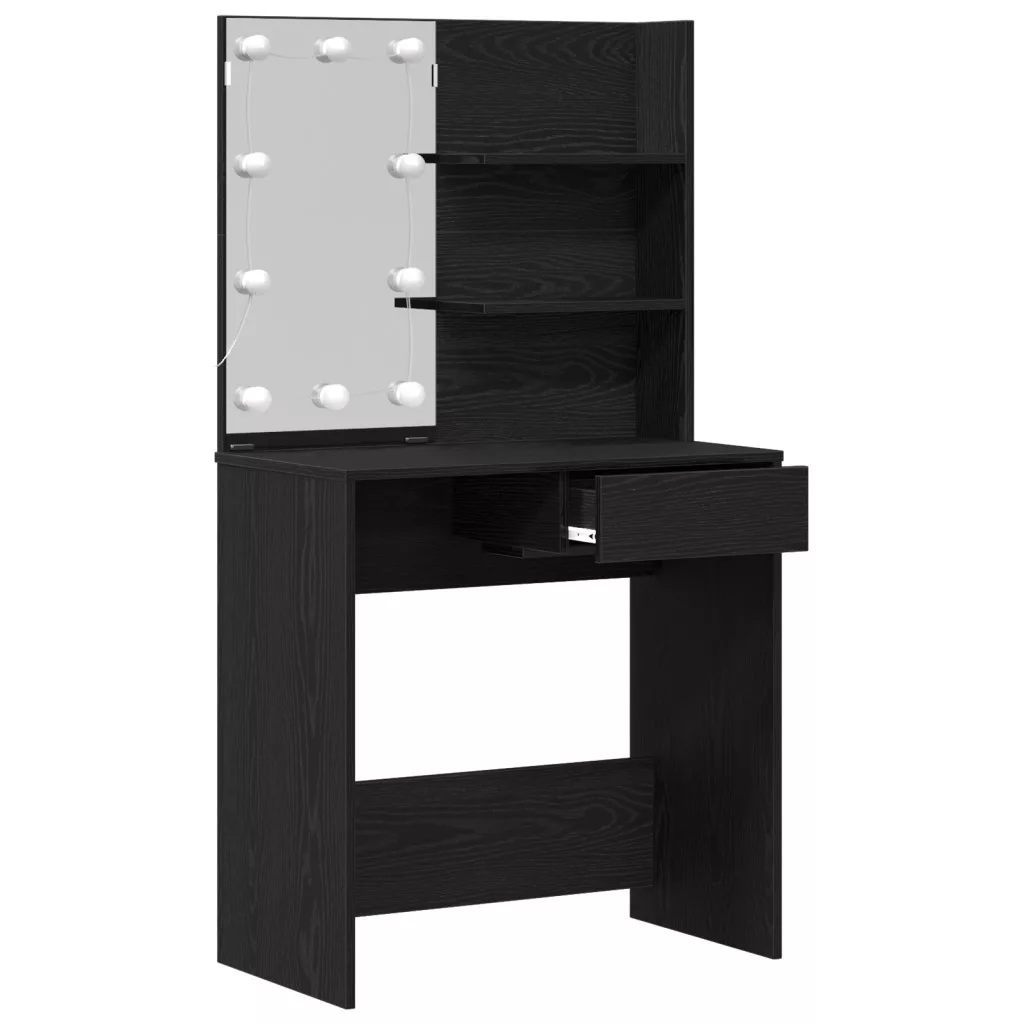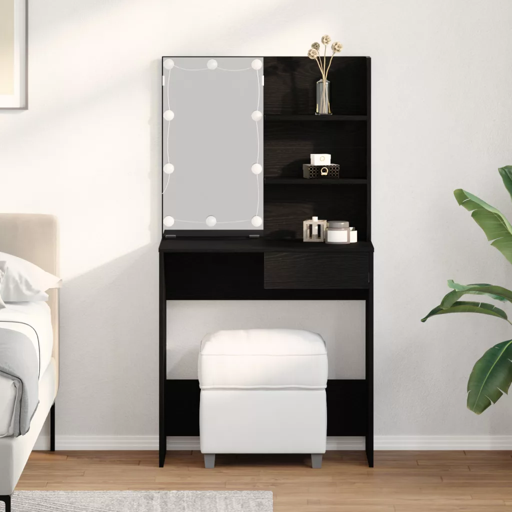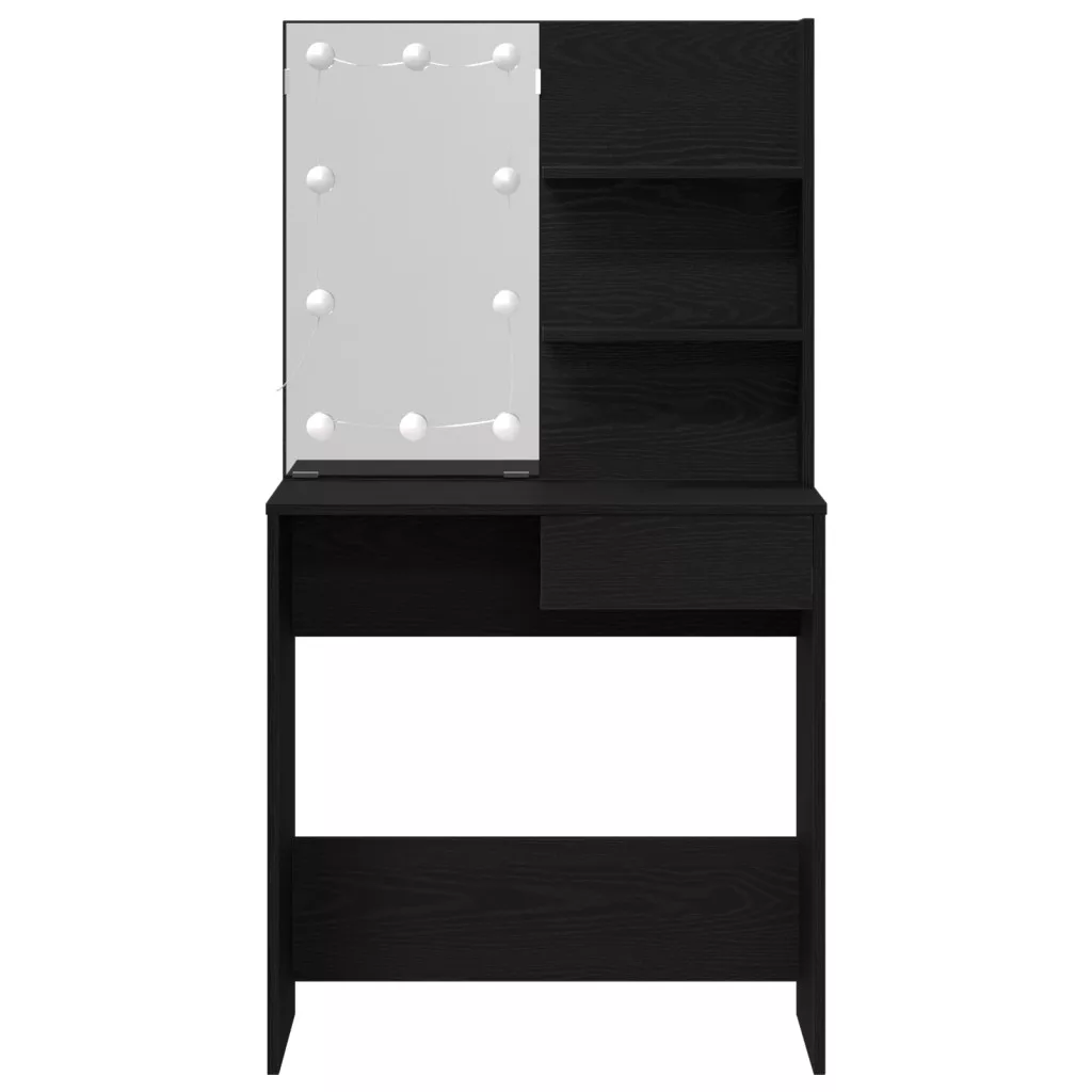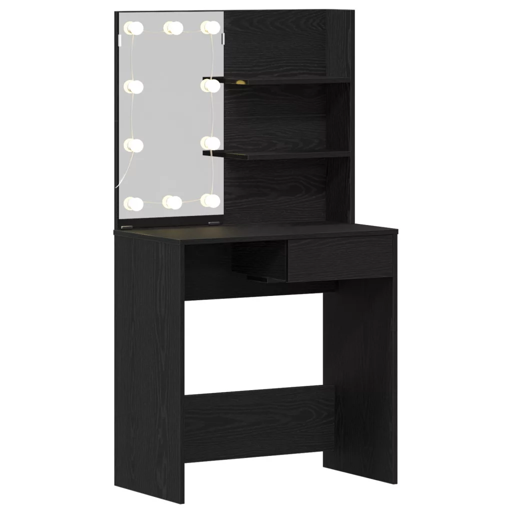 LED öltözködő asztal fekete tölgyből - 71x40x141 cm, mérnöki fából