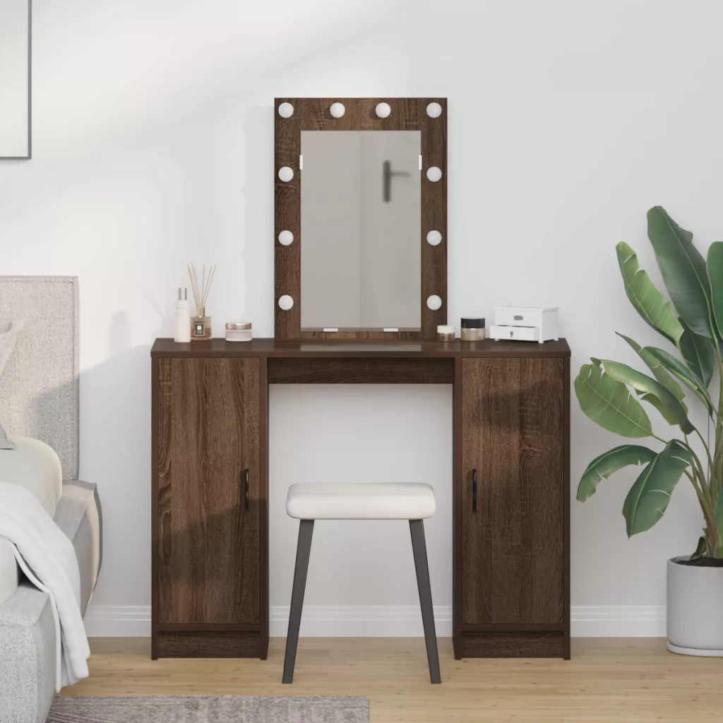 LED világítással ellátott sminkasztal Barna tölgy 102x33x135 cm
