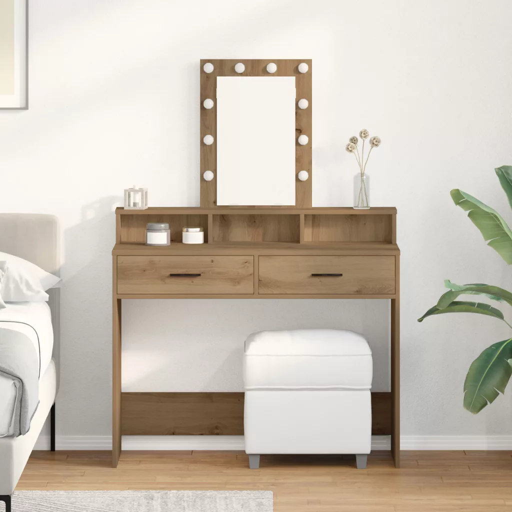LED világítással ellátott sminkasztal, kézműves tölgy 100x41x140 cm