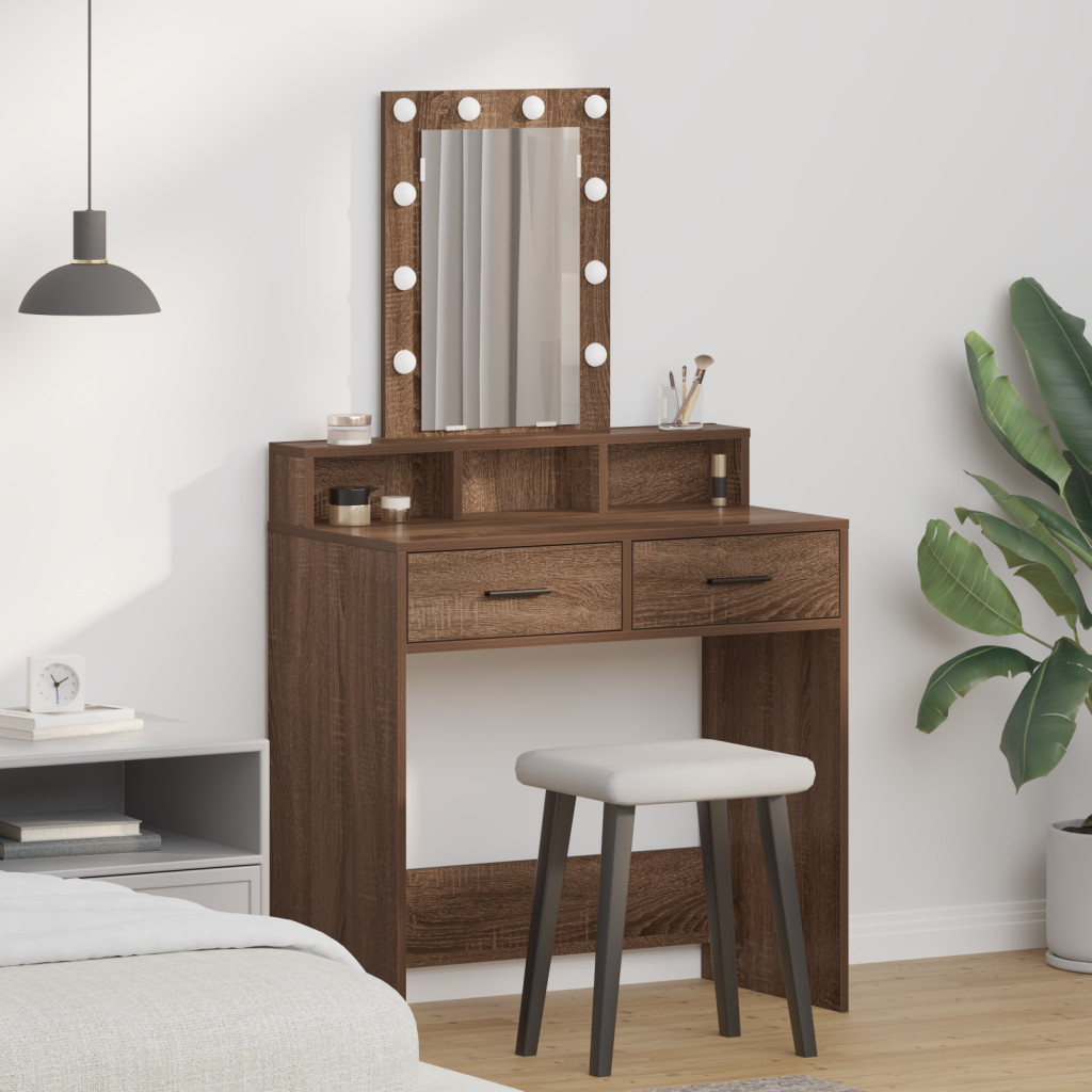 LED világítós öltöztetőasztal Barna Tulipán 79x41x140 cm