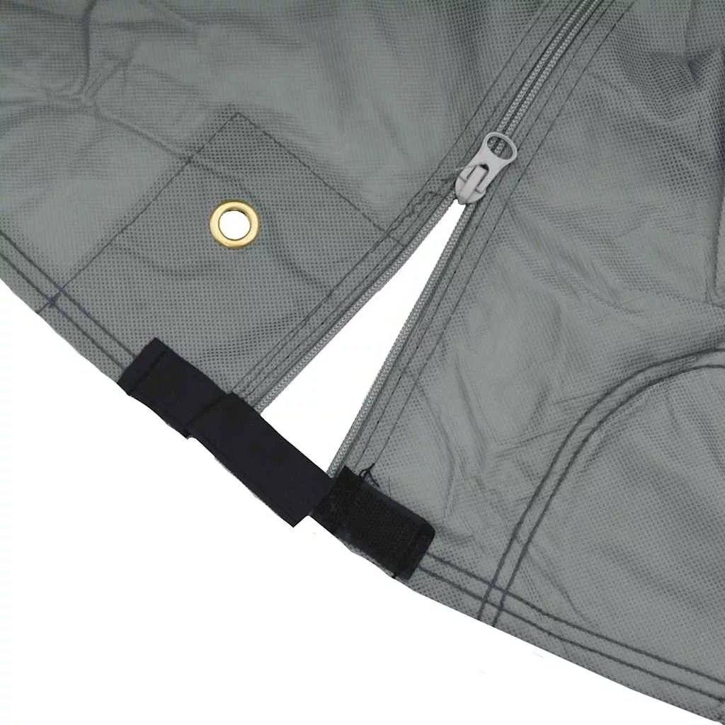 Ez a lakókocsihuzat alapvető védelmet nyújt lakókocsijának, szárazon és tisztán tartja még esős vagy havas időben is. Időjárás elleni védelem: Ez a lakókocsihuzat erős és légáteresztő 3 rétegű nem szőtt anyagból készült a tetején és egyrétegű oldalain, amely kivételes víz- és szakadásállóságot és UV-védelmet kínál. Hatékonyan védi járművét esőtől, hótól, erős széltől, madárürüléktől, portól és karcolásoktól.Szélálló kialakítás: A huzat elasztikus szegélyei szoros illeszkedést biztosítanak járművéhez, míg az alján lévő csatokkal ellátott állítható pántok biztonságosan a helyén tartják még erős széles napokon is. Ezenkívül a huzat tépőzárral rendelkezik a cipzárok körül a biztonságos rögzítés érdekében.Kényelmes és hozzáférhető: Az oldalsó cipzáras panelek feltekerhetők, hogy kényelmesen hozzáférhessenek a jármű ajtajához, míg az ablakok könnyen kinyithatók a nagyobb szellőzés érdekében.Könnyű tárolás: ehhez a járműhuzathoz egy kényelmes tárolótáska tartozik, így használaton kívül is könnyen tárolható. Jó tudni:Vásárlás előtt kérjük, mérje le járműve pontos méretét a megfelelő méret kiválasztásához.