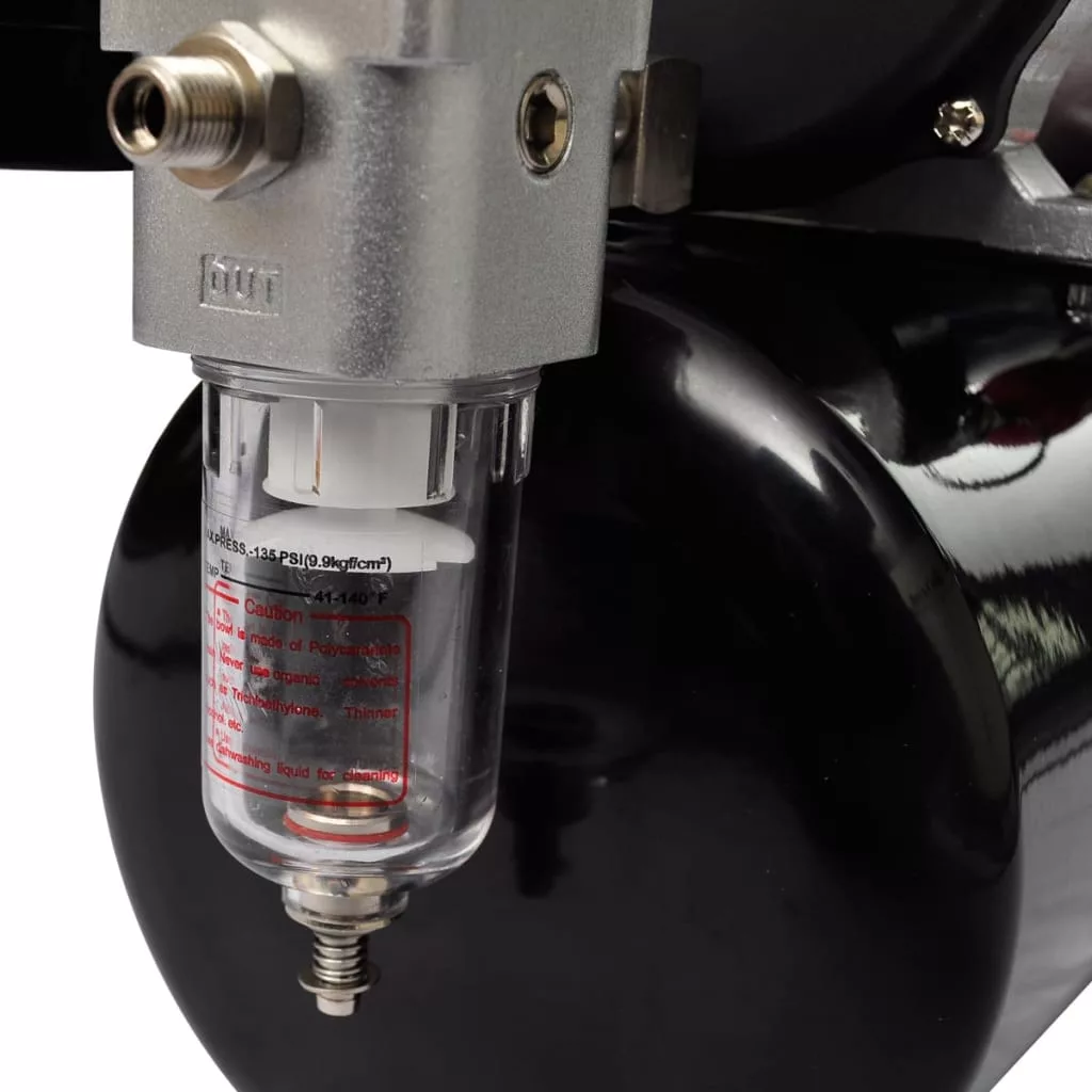 Ez a kompresszor-szett úgy van kialakítva, hogy légfúvókkal és kisebb szórópisztolyokkal használható legyen. Valamennyi légfúvót igénylő művelethez használható, mint például szoláriumi permetezéshez, modellezéshez, sminkeléshez, tetoválásokhoz, pólódíszítéshez, körömépítéshez, kerékpáros sisakok díszítéséhez stb.Ez a professzionális airbrush-szett egy mini kompresszorból, három légfúvó pisztolyból és egyéb tartozékokból áll: 1. Mini dugattyús kompresszorEz az olajmentes, 3 literes légtartállyal, légszabályozóval, légszűrővel és manométerrel ellátott dugattyús kompresszor bármilyen 0,2 - 1,0 mm-es fúvókaméretű légfúvóhoz használható.- Jellemzők és funkciók* Hordozható és könnyű* 3 literes levegő tartály: amely sima légáramlást, nullimpulzust biztosít * Légnyomás kijelző levegőszűrő * Állítható légnyomás* Olajmentes, nem légszennyező* Levegővel indul* Folyamatos nagy teljesítményű működés* Automatikus ki/bekapcsolás * Termikusan védett belsőAlacsony zajszint: 47 dB(A)* Biztonságos védelmet szolgáló eszközök a levegőtartály számára 2. Egyfunkciós szórópisztoly - 7 darabos készlet Ez az egyfunkciós, hétrészes légfúvókészlet kereskedelmi művészetekhez, illusztrációkhoz, fotóretusáláshoz, kézműves tevékenységekhez stb. használható.3. Duplafunkciós szórópisztoly - 8 darabos készlet Ez a duplafunkciós, 8 darabos légfúvókészlet minden típusú modell-készítésre, kozmetikai célokra, tetoválások, festés, illusztrációk és sok minden más esetén használható.4. Duplafunkciós szórópisztoly - 9 darabos készletA készlet egy precíz fejű légfúvót, egy 150 cm-es viniltömlőt, egy tetővel ellátott 2 unciás tartályt, egy 3/4 unciás tartályt, csavarkulcsot, hajtóerő-szabályozót és egy adaptert (6,35 mm-es tömlőt a kompresszor és a kisebb légfúvótömlő összekötéséhez) tartalmaz5. 3 az 1-ben légfúvótisztító edény Ezzel a 3 az 1-ben légfúvótisztító edénnyel a légfúvó túlszórás nélkül tisztítható. 6. LégfúvótartóEz a légfúvótartó legfeljebb 4 darab, szinte bármilyen típusú légfúvó tárolásához használható.7. Mini szűrő A szűrő közvetlenül a légfúvóra rögzíthető, így tiszta és száraz levegő kerül a légfúvóba, és tökéletes levegőfújást biztosít.8. 3-irányú tömlőcsatlakozó 2 dugóval A csatlakozó közvetlenül csatlakoztatható a kompresszorhoz, vagy pedig a kompresszor és a pisztolyok közé, ez által egyidejűleg akár 3 csatlakozást is lehetővé tesz.9. Gyorskioldó Ez a csatlakozó a légtömlő végére csavarható, és a rugós hüvely visszahúzásával a légfúvó levehető. Ez az elem önzáró, ha nincs csatlakoztatva, így megakadályozva a légnyomás megszűnését a tömlőben, mielőtt eszközöket cserélne rajta.A szállítmány tartalma: 1 db 3 literes légtartállyal, légszabályozóval, légszűrővel és manométerrel ellátott mini kompresszor eredeti dobozzal; 1 db egyfunkciós, 7 darabos légfúvókészlet tárolódobozban; 1 db duplafunkciós, 8 darabos légfúvókészlet tárolódobozban; 1 db duplafunkciós, 9 darabos légfúvókészlet tárolódobozban,1 db 3 az 1-ben légfúvótisztító edény, 1 db légfúvótartó, 1 db mini szűrő, 1 db 3-irányú tömlőcsatlakozó 2 dugóval, 1 db gyorskioldó, 1 db adapter (M5*0,5-G1/8) és 1 db csatlakozó (G1/8 belső menetes - G1/4 külső menetes). Ne hagyja, hogy gyerekek játsszanak a készülékkel. Ez nem játék. Csak műszakilag képzett kezelők használhatják a szerszámot. A termék használata előtt viseljen személyi védőfelszerelést. Az elektromos kéziszerszám használata közben tartsa távol a gyerekeket és a közelben lévőket.