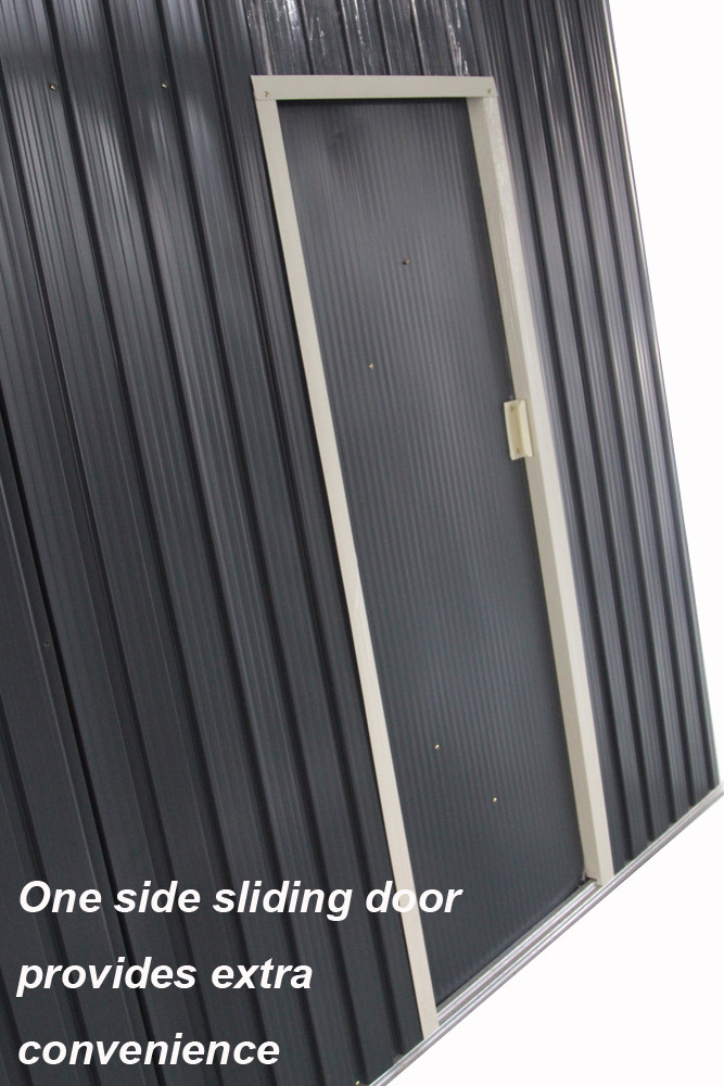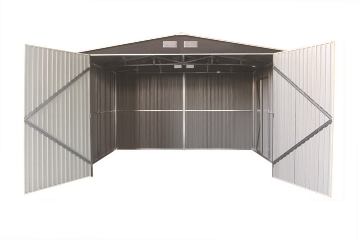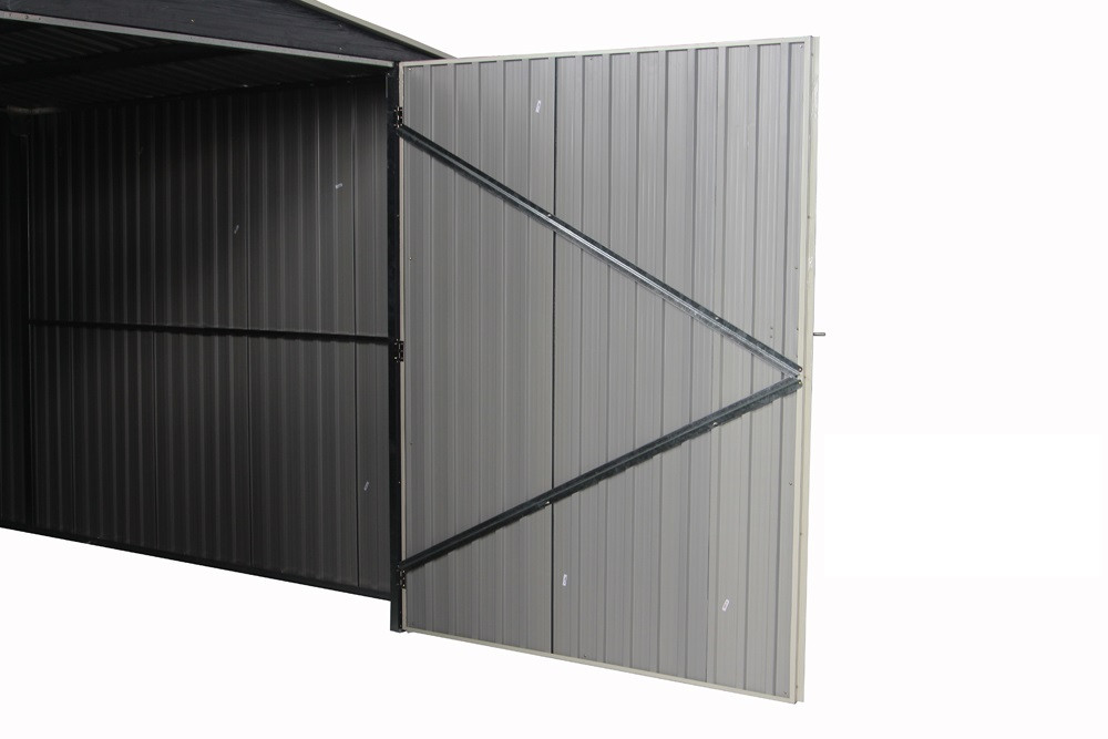 A kerti ház / garázs ideális, költséghatékony és praktikus tárolási lehetőség kerti szerszámok, bútorok, motorkerékpárok, fűnyírók, kerékpárok és még sok más kerti használati cikk számára, emellett garázsként is ragyogóan megállja helyét! A szilárd horganyzott vázra kell erősíteni a porszórással bevont horganyozott acéllemezeket, melyek ellenállnak az időjárás viszontagságainak és nagyon hosszú élettartamúak. A tároló / garázs rendelkezik egy nagy szárnyas kapuval, valamint egy oldalsó bejárati ajtóval is!A kerti ház összeszerelését minden körülmény között javasoljuk rögzített, például kövezett vagy betonozott teraszon, vagy előre elkészített felületen, például fapadlón, paneleken, stb.
