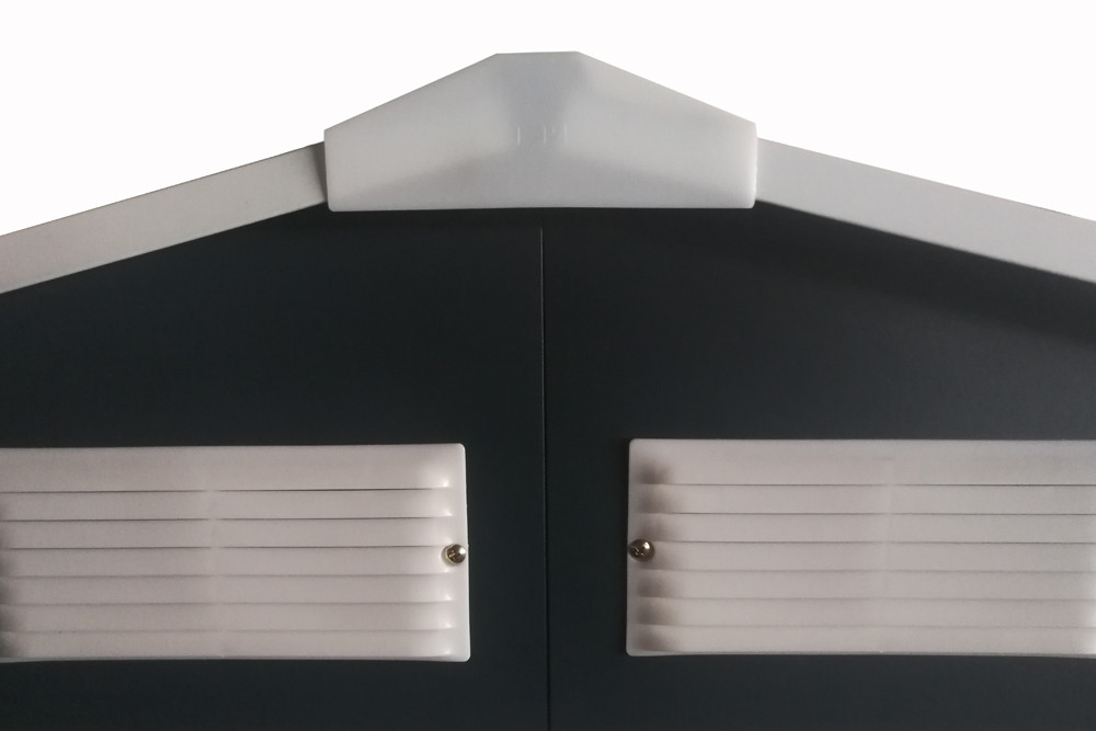 Anyaga:Minőségi profilozott acéllemez, vastagsága 0,25 mm - 0,30 mmhorganyzott acéllemez, porszórással bevontHorganyzott acélszerkezet (kb. 1mm)-könnyen összeszerelhető-modern design-szellőztető rácsok