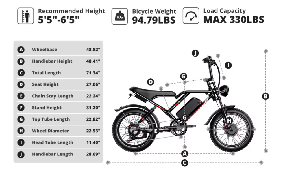 kerékpár mérete: 1630 x 720 x 1100mm