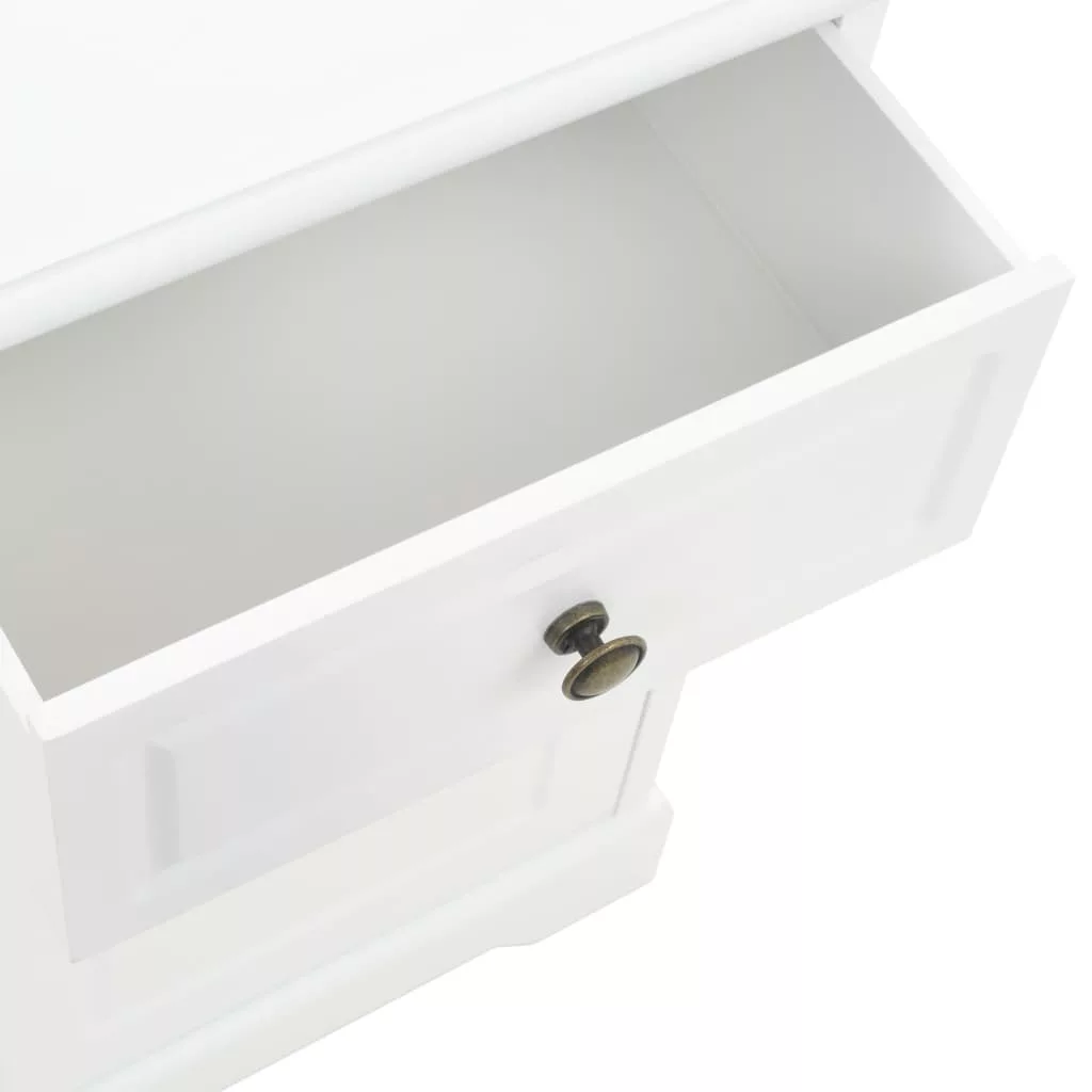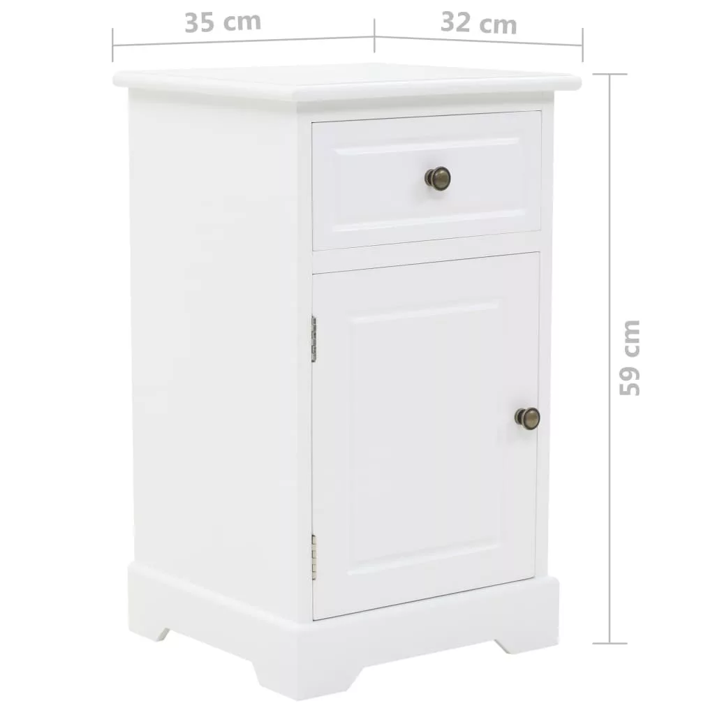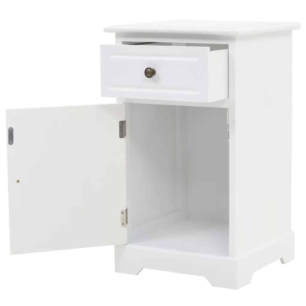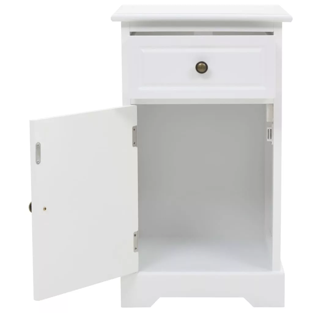 Ez az éjjeliszekrény nagyszerű kiegészítője lesz hálószobájának sikkes dizájnjának és letisztult fehér felületének köszönhetően. Kisszekrényként is használható. Az éjjeliszekrény MDF-ből készült, a fiókokat pedig fémfogantyúk díszítik. 1 fiókkal és 1 nagyméretű szekrénnyel lett felszerelve, így bőséges helyet kínál kisebb dolgok rendezett tárolásához. A szekrény tetejére akár ébresztőjét, egy pohár vizet vagy fényképkereteket és egyéb dísztárgyakat is tehet.