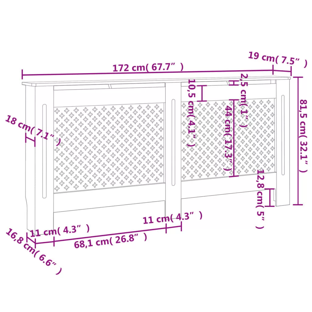 Ez a radiátorburkolat stílusos és praktikus kiegészítője lesz nappalijának. Ezt a radiátorburkolatot úgy tervezték, hogy dekoratív külsővel ruházza fel radiátorát, és további polcot biztosítson könyvek, képkeretek, dísztárgyak stb. számára. A masszív és tartós radiátorszekrény MDF-ből készült. A radiátorburkoló szekrény modern, rácsos kialakítású, amely bármilyen dekorációhoz illik. Radiátorburkolatunk könnyen összeszerelhető.