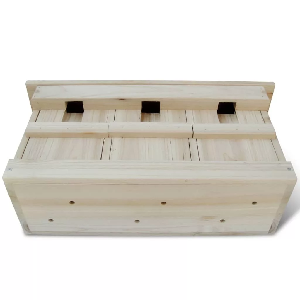 Ez a szép madár ház, tömör fa építés, a célja a tollas családnak a tartása! A háznak van egy természetes fa színe, valamint meleg és biztonságos madár fészek.Ez a madár ház 3 kamrás , amely képes befogadni 3 párt hogy költsenek és növeljék a csibéket. Mindegyik kamra egy levehető bejárati ajtót tartalmaz, könnyen tisztítható. Felszerelt fém fogasok, a madár ház kész kell felszerelni a kertben.A szállítás tartalmaz 1 x madár házat.