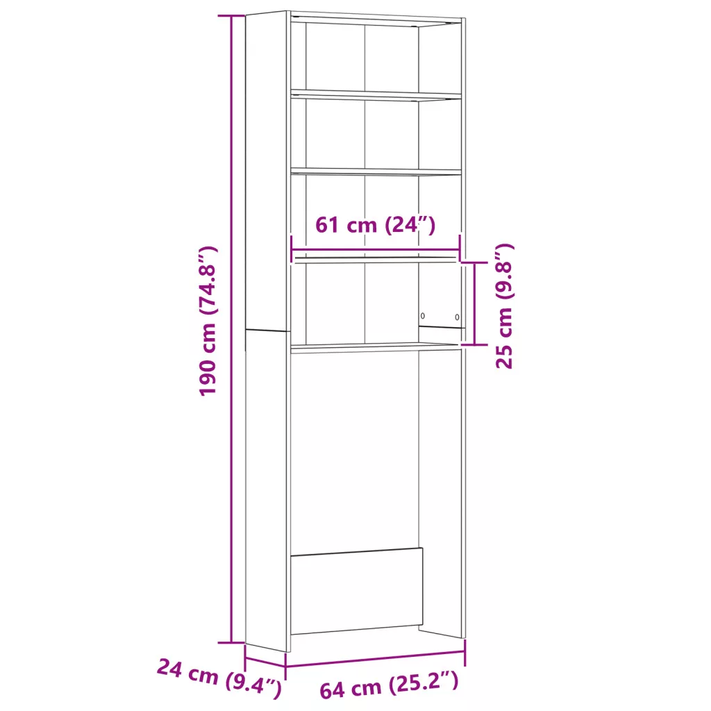 Mosógép Szekrény Fekete tölgy 64x24x190 cm Mérnök Fa