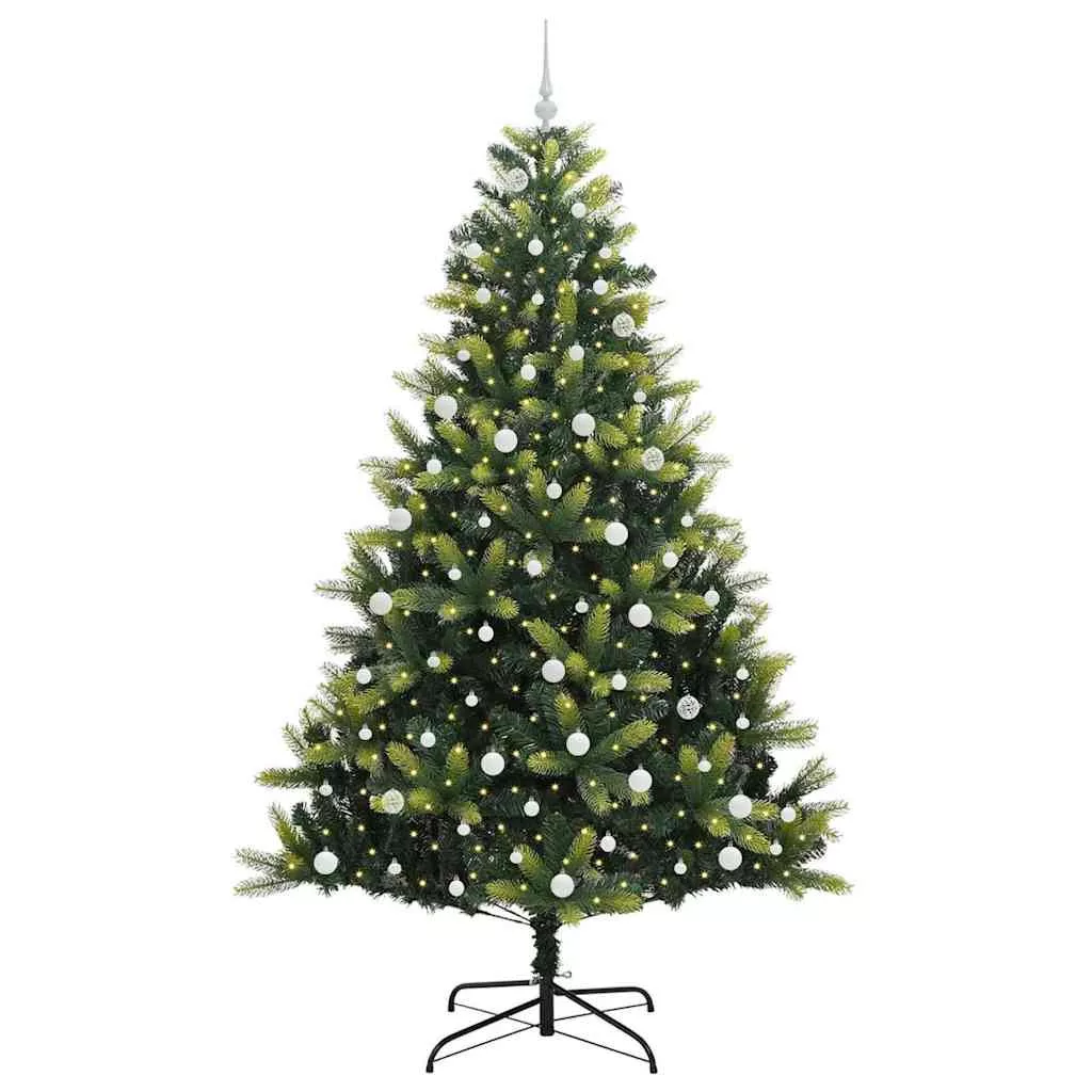 Műanyag Hingált Karácsonyfa 300 LED-del Zöld 240 cm PVC és PE