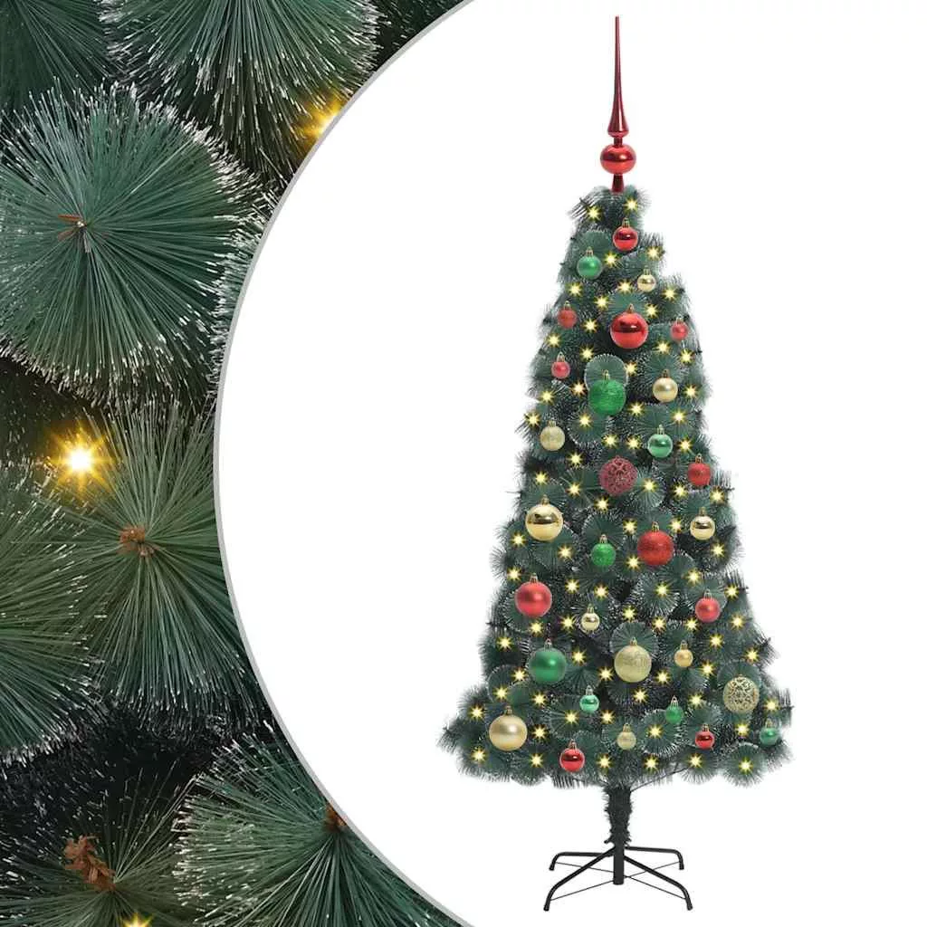 Műfenyő LED világítással és díszekkel Zöld 120 cm PET