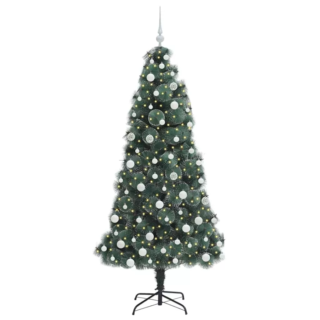 Műfenyő LED világítással és gömbszettel Zöld 180 cm PET