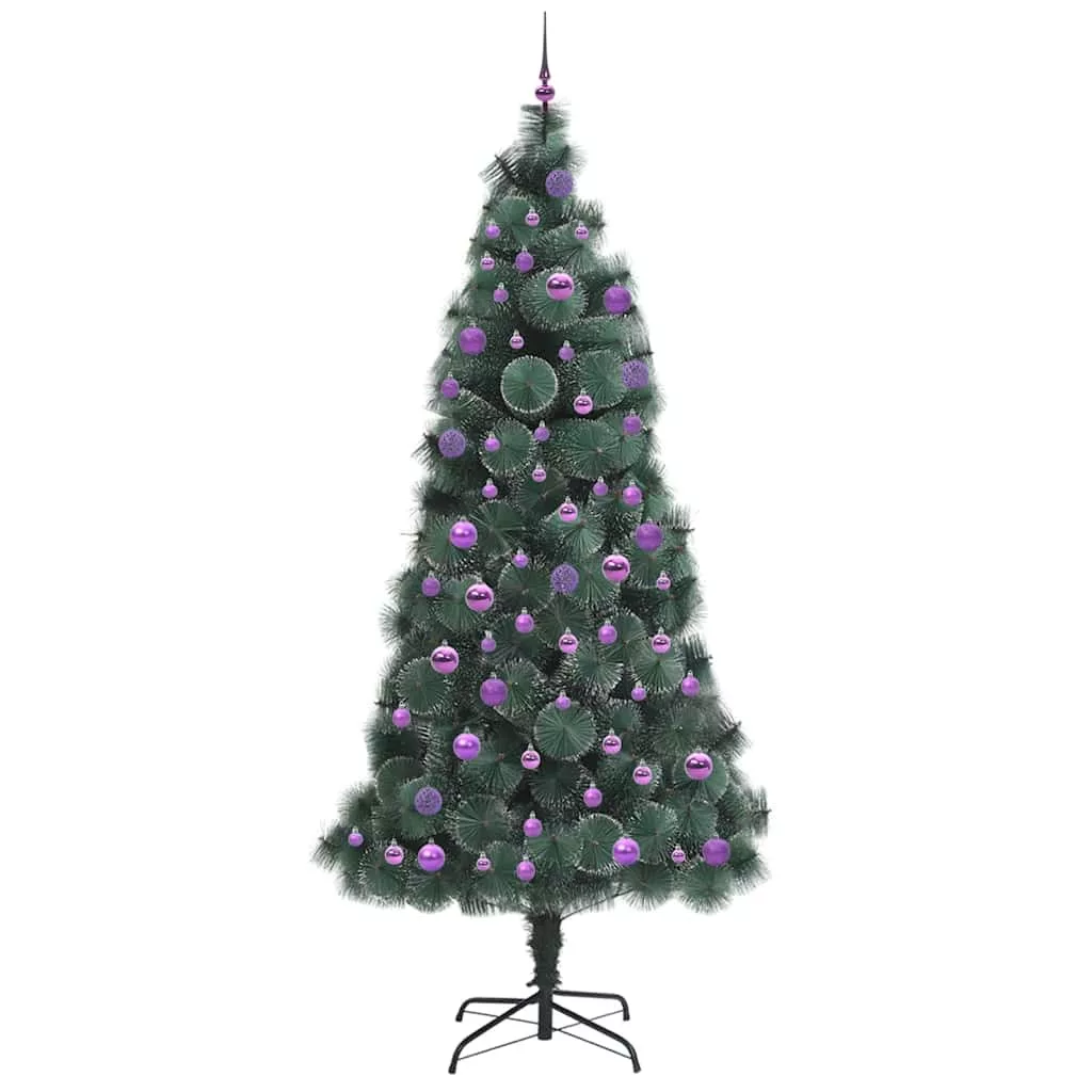 Műfenyő LED világítással, gömbökkel 300 LED-del Zöld 240 cm PET